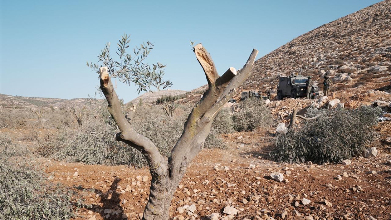 İsrail polisi ve askerince korunan fanatik İsrailliler, 1400 zeytin ağacı ile fidanını da söktü.