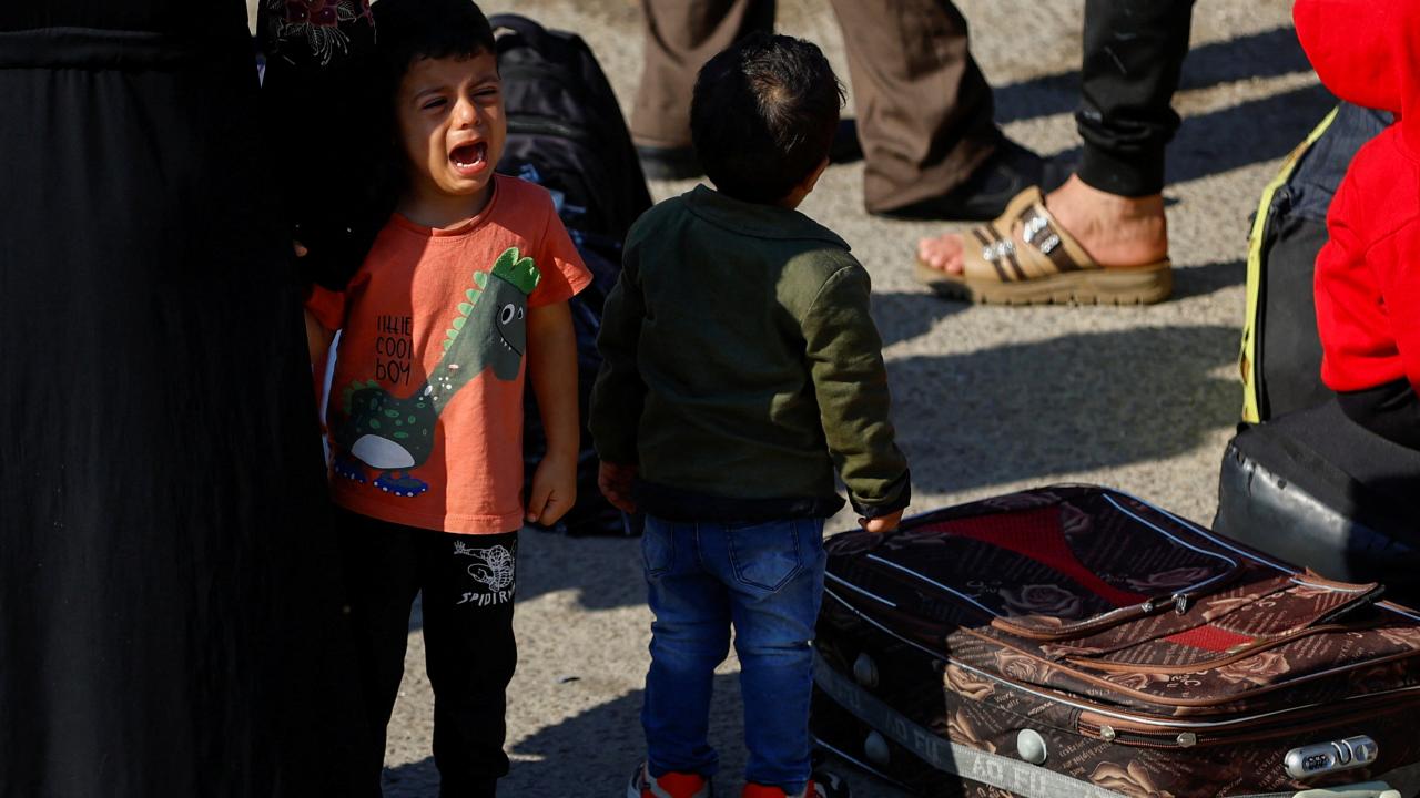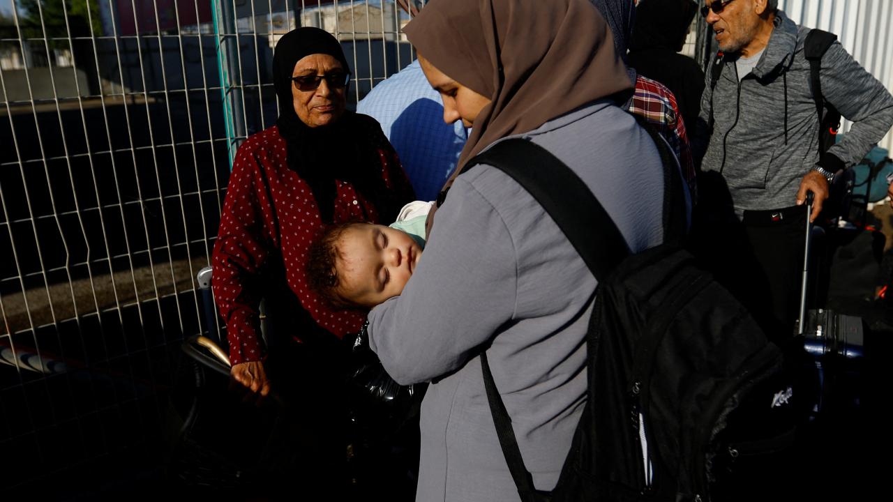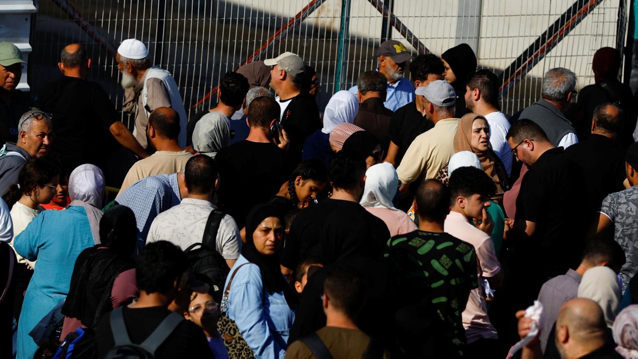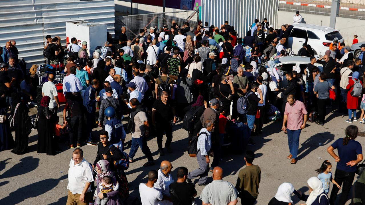Çifte vatandaşlığa sahip Filistinliler, İsrail'in Filistin şiddetinin ortasında, Gazze Şeridi'nin güneyindeki Refah sınır kapısı dışında toplanıyor.