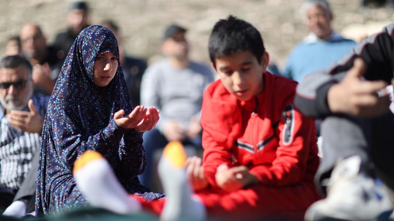 Cuma namazının kılındığı yere "Sahte mezarları reddediyoruz" yazılı pankart asıldı.