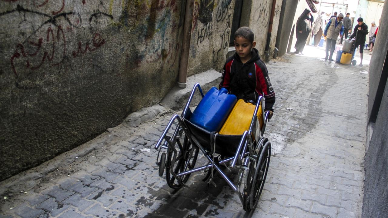 İsrail saldırıları altındaki Gazze'nin Cibaliye Mülteci Kampı'ndaki Filistinliler, günlük su ihtiyaçlarını temin etmek için her gün mücadele veriyor.