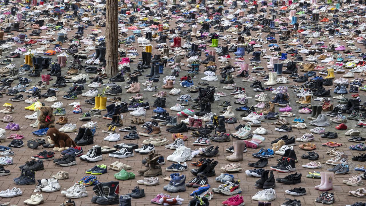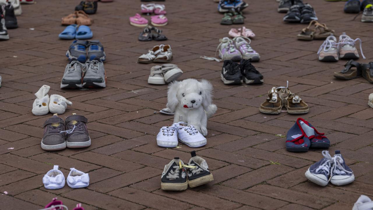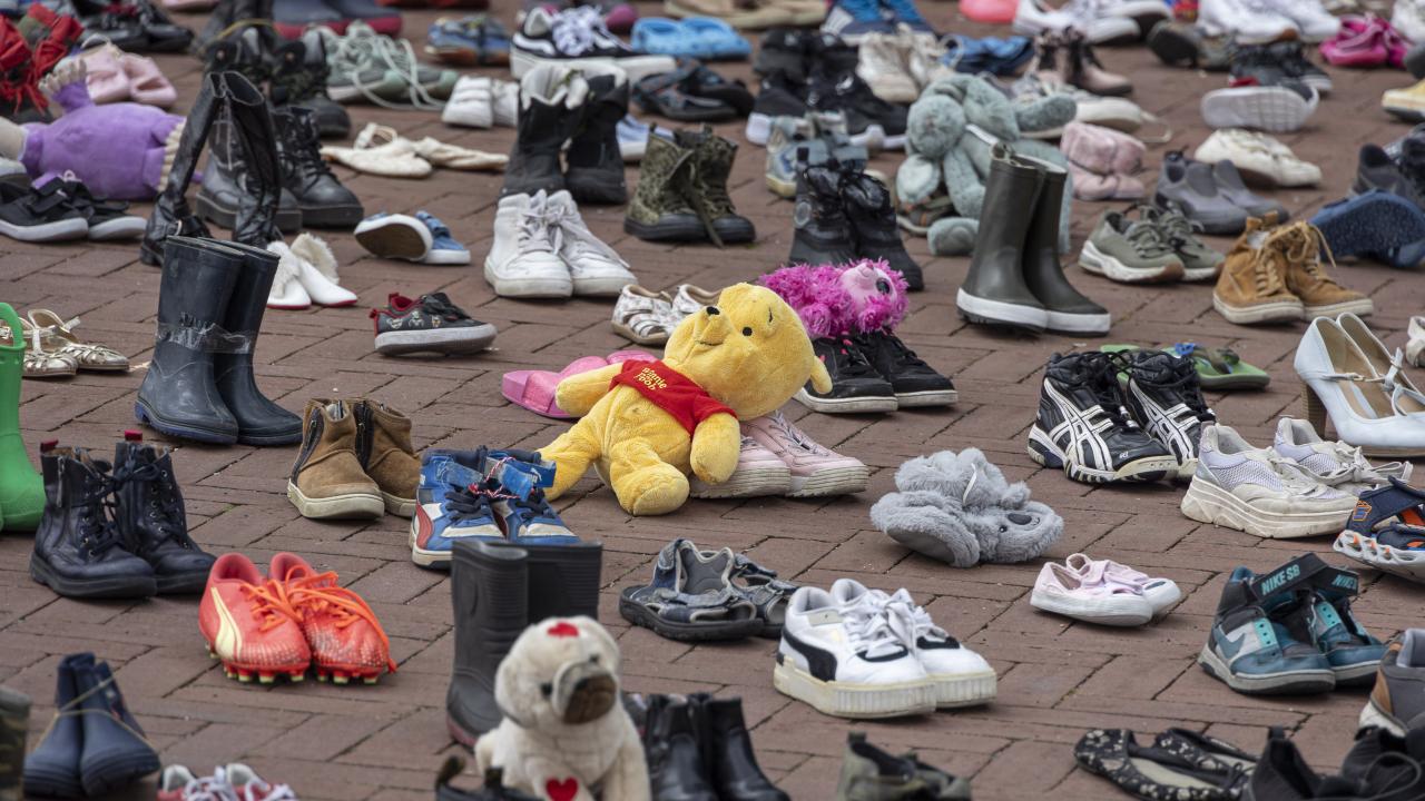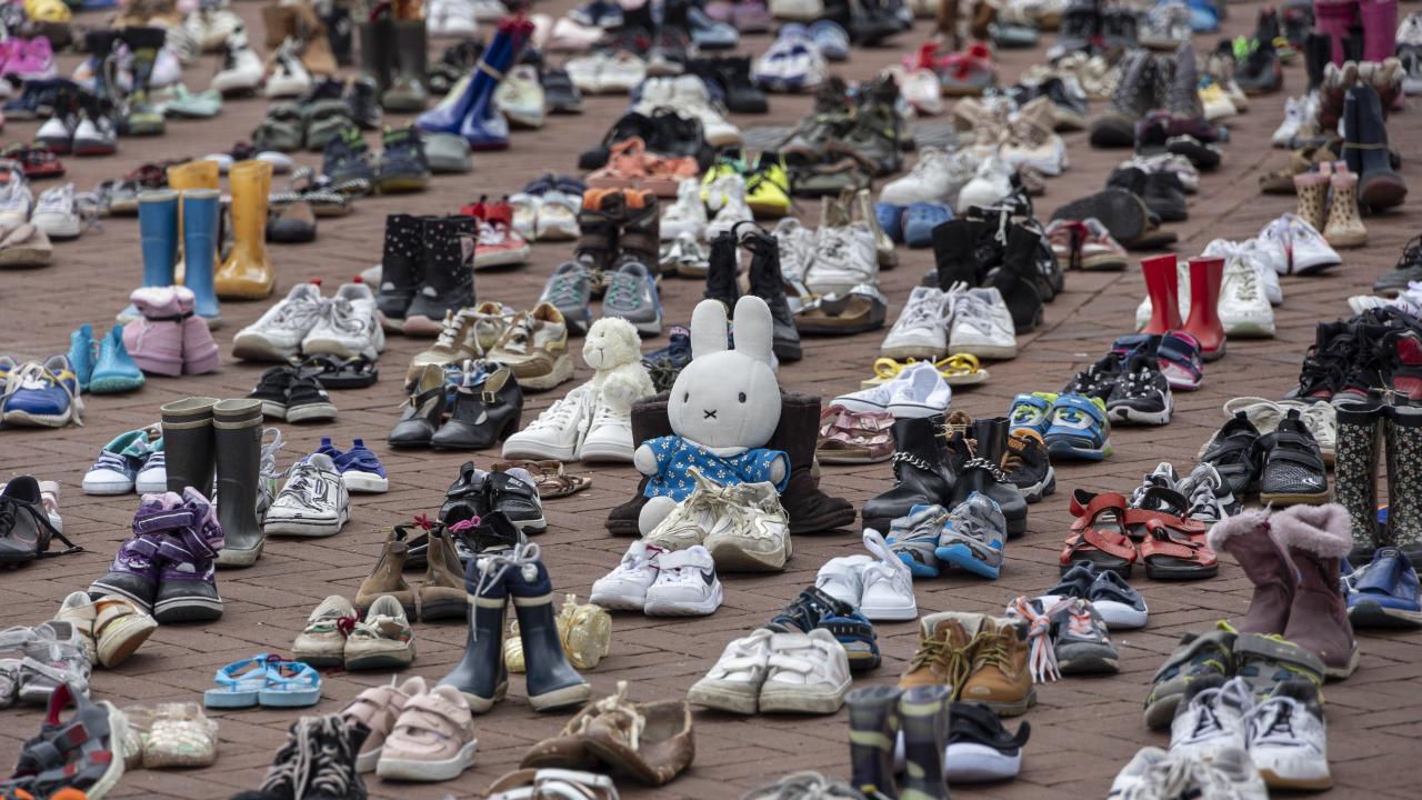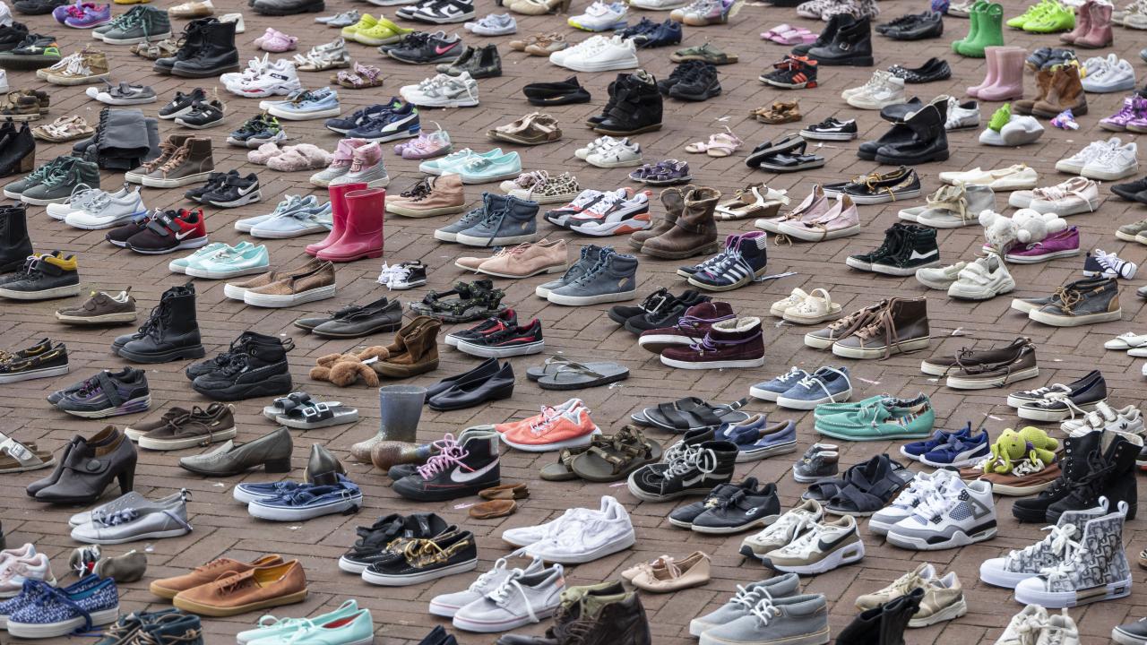 Hollanda'nın başkenti Amsterdam'da ''Plant an Olive tree for Palestine'' tarafından düzenlenen gösteride vatandaşlar tarafından İsrail'in Gazze'ye yönelik saldırılarında öldürülen Filistinlilere ve çocuklara dikkat çekmek için yaklaşık 15.000 çift ayakkabı bırakıldı.