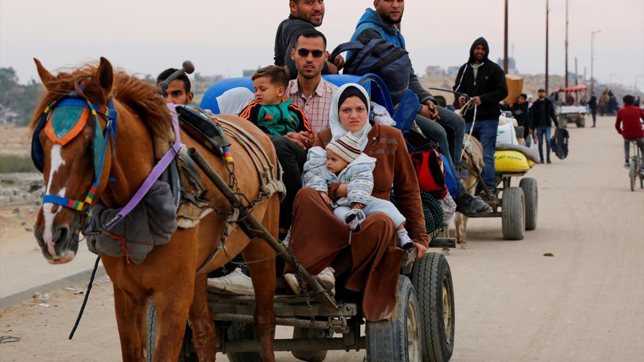Gazze’de, İsrail’in saldırıları nedeniyle yerinden edilen Filistinliler, güneyden kuzeydeki topraklarına dönmeye devam ediyor.