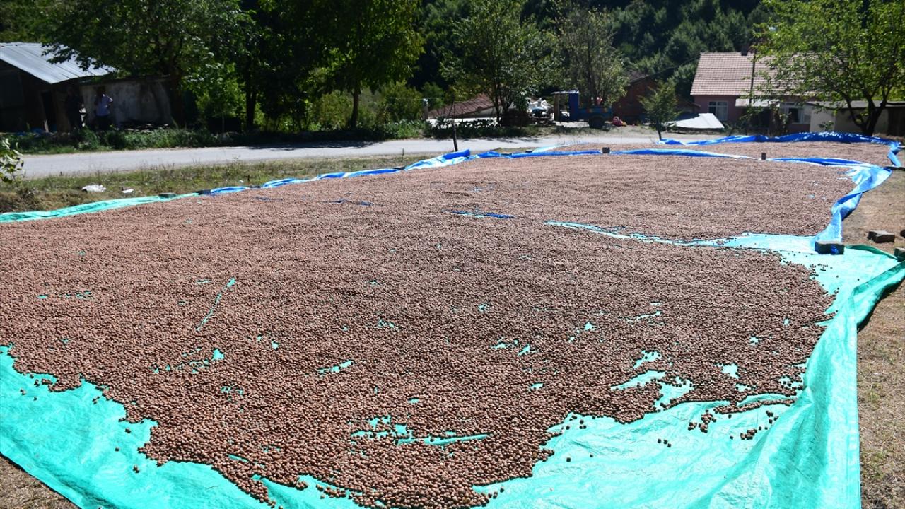 Düzce'de bahçelerinden topladıkları fındığı eğimli arazi nedeniyle kurutmakta sıkıntı yaşayan üreticiler, yol kenarları, kaldırımlar ve boş alanları kullanıyor.