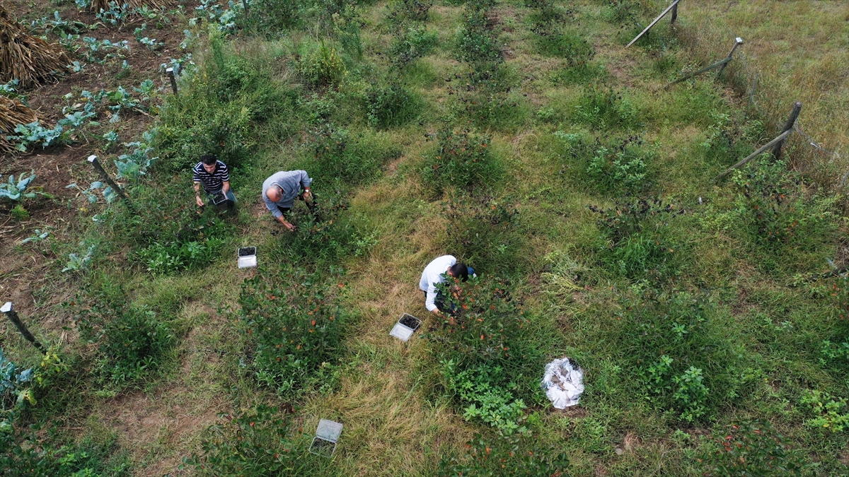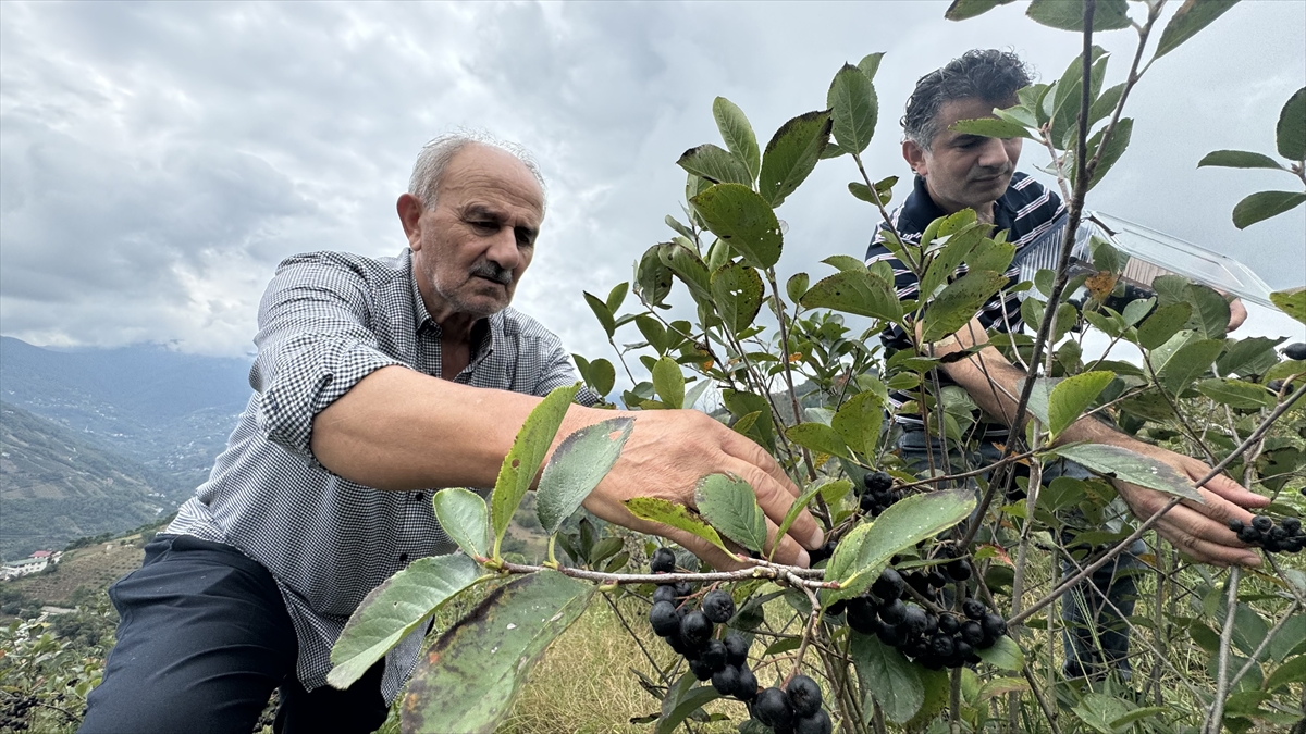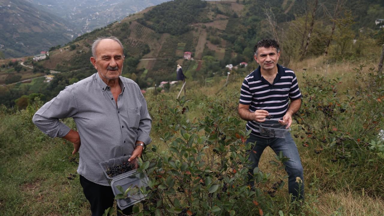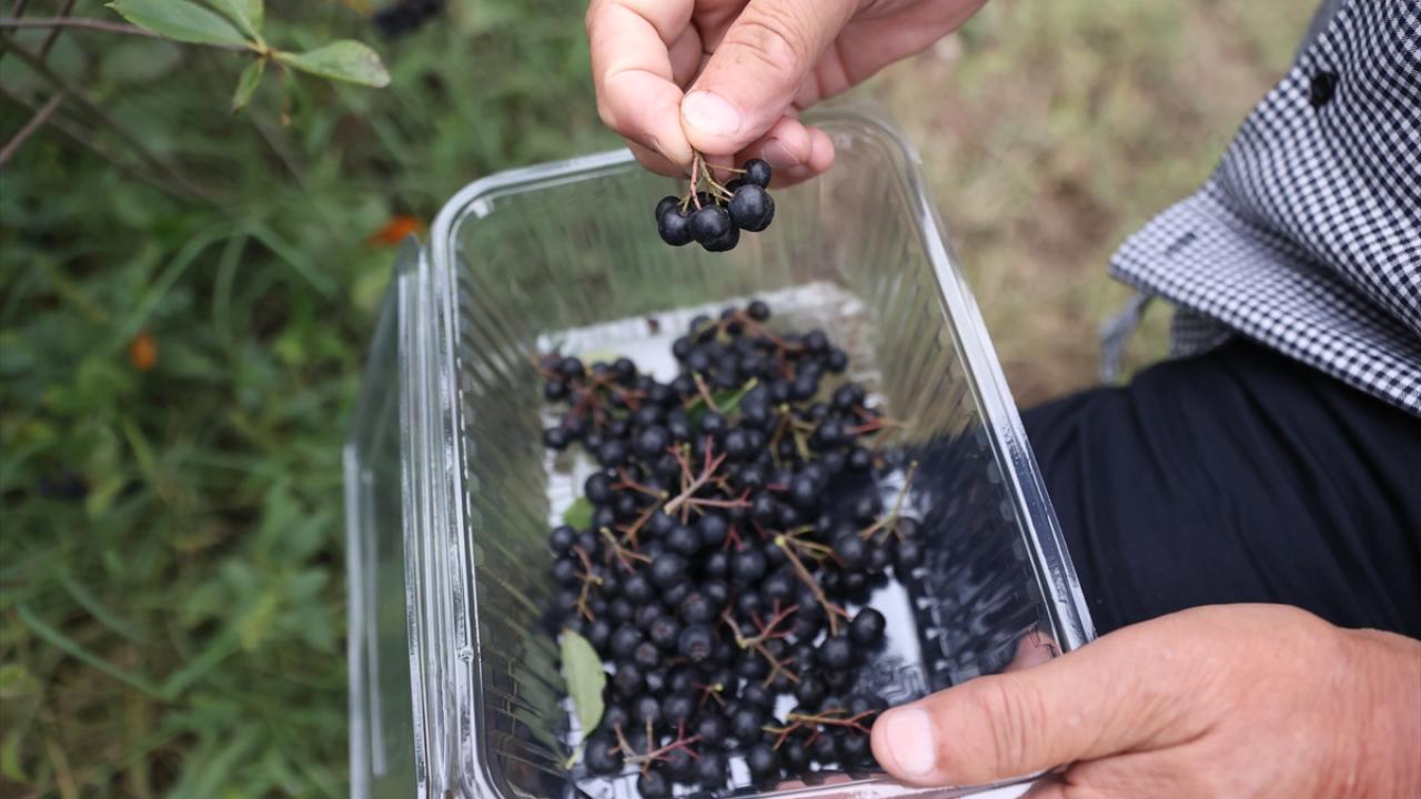 Fındık ve mısıra alternatif olarak 4 yılda 143 dönüm arazide toprakla buluşan aronyalar, bugünlerde tek tek toplanarak hasat ediliyor.