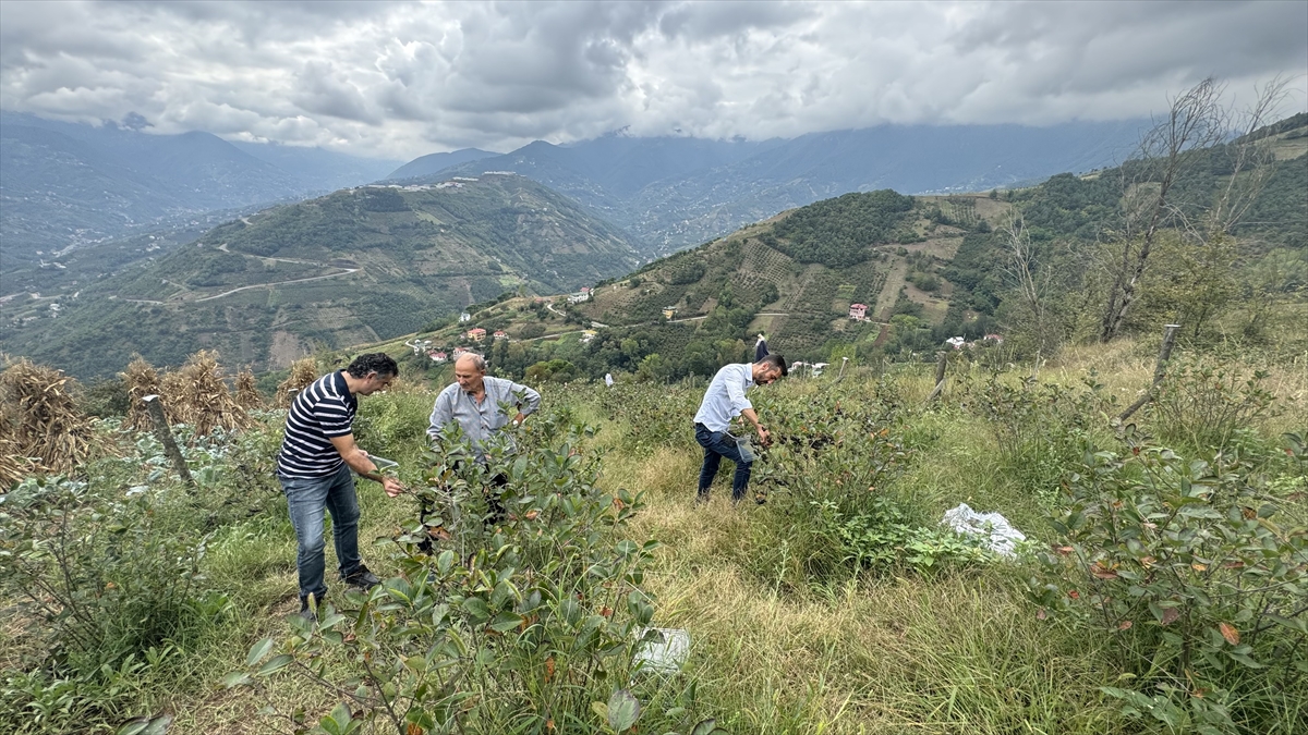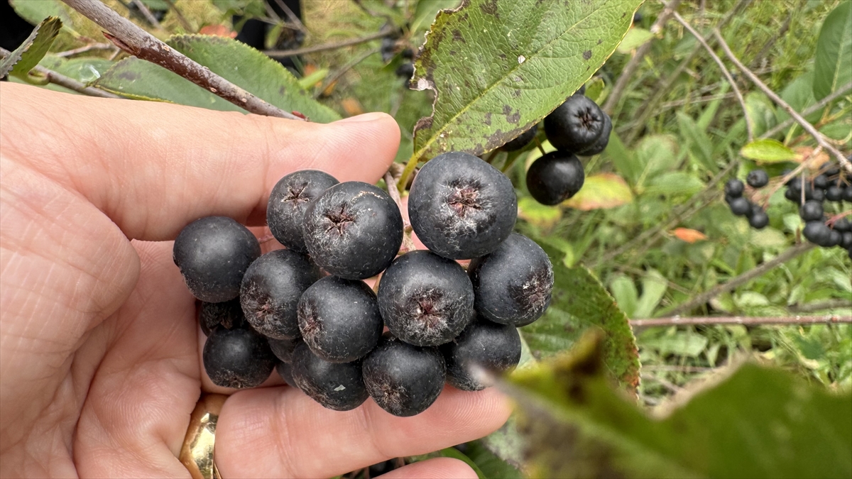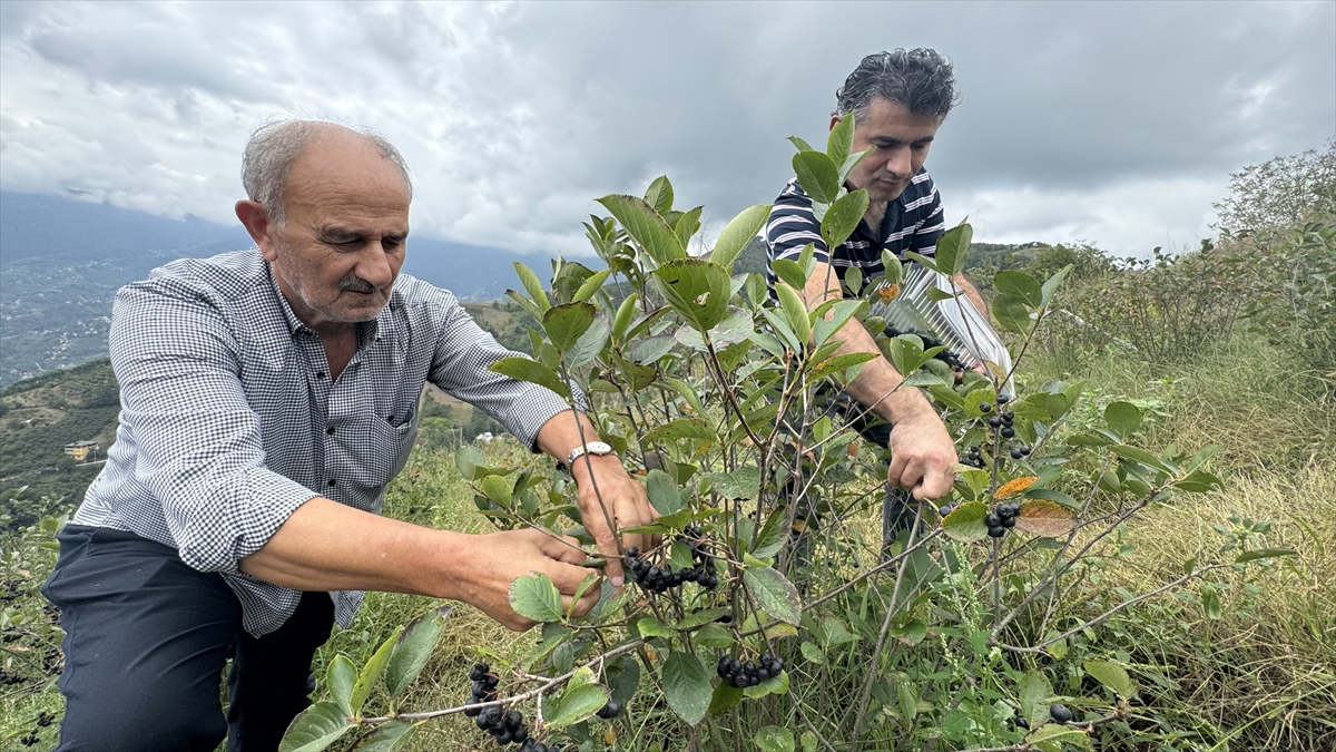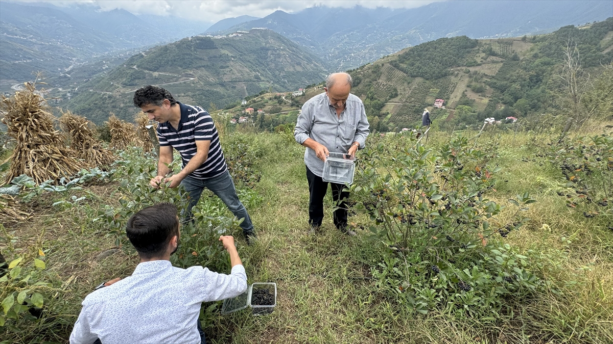 Fındık ve mısıra alternatif olarak 4 yılda 143 dönüm arazide toprakla buluşan aronyalar, bugünlerde tek tek toplanarak hasat ediliyor.