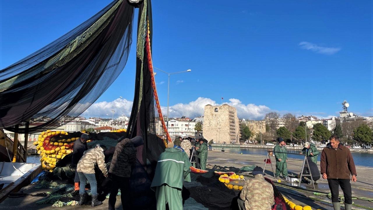 Av mesaisine mola veren balıkçılar yıpranan ağlarını onararak teknelerinde temizlik işlemleri yapıyor.