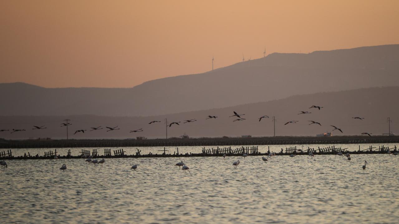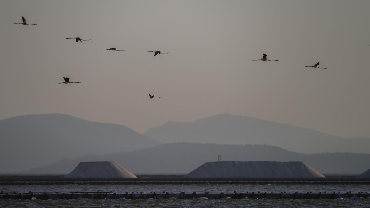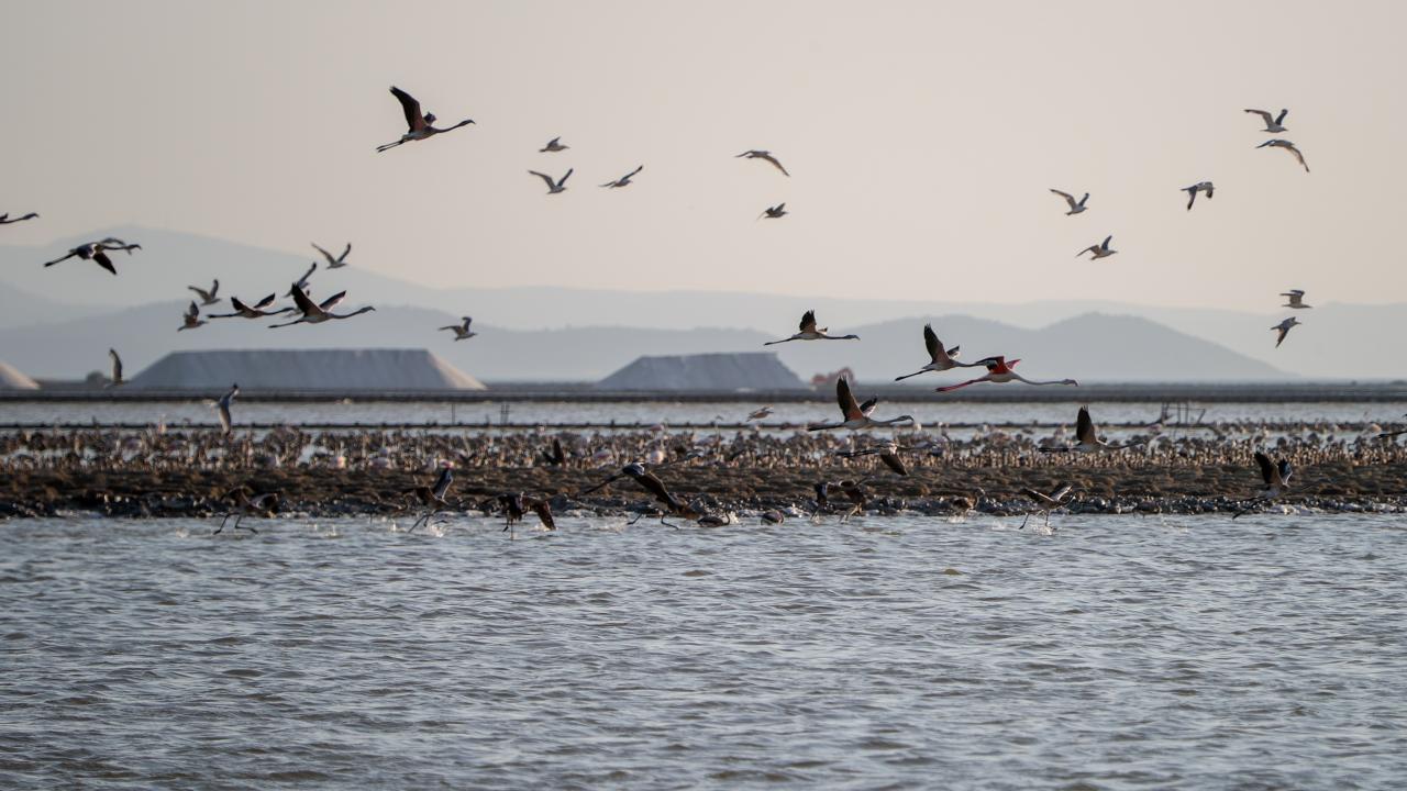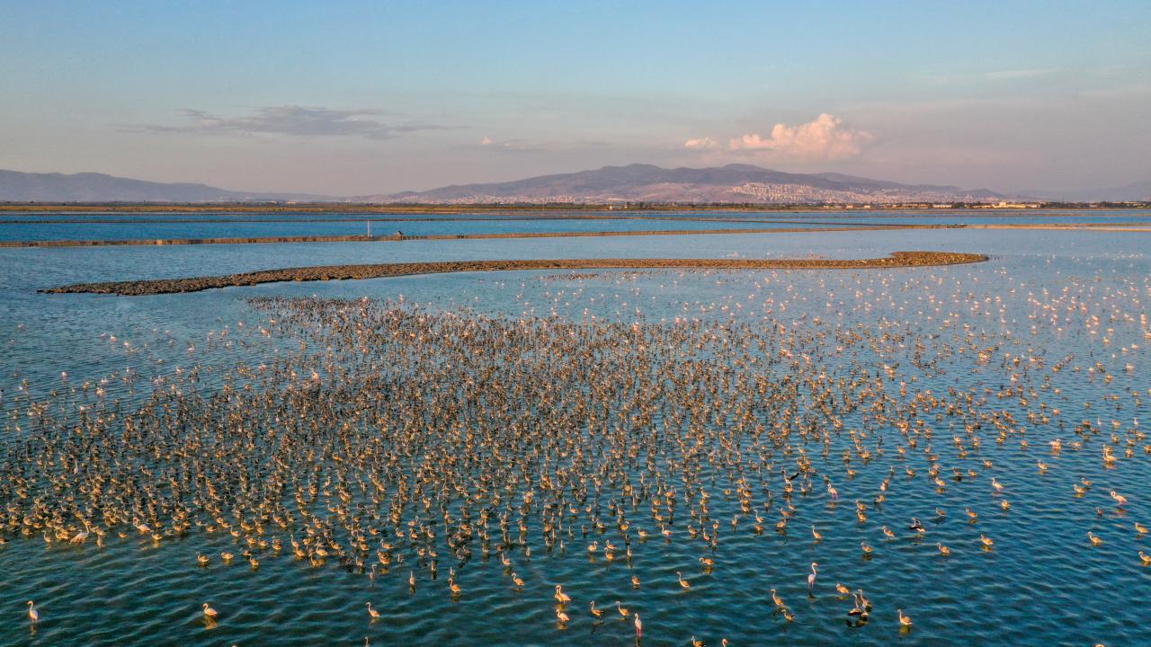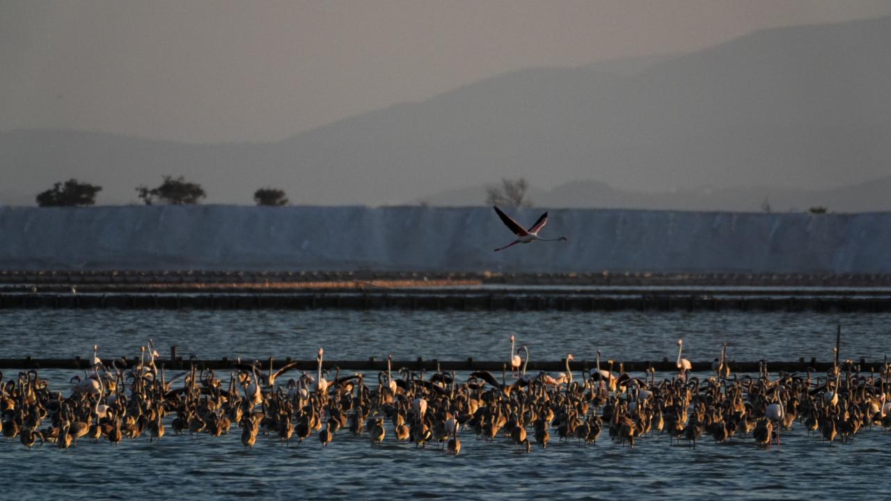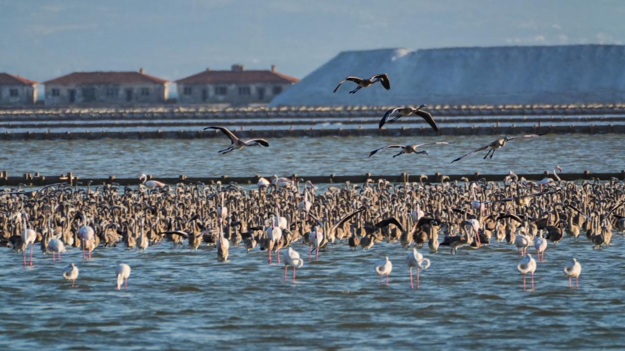 İzmir Kuş Cenneti'nde mayıs ayında yumurtadan çıkan binlerce flamingo yavrusu, farklı ülkelere göç için kendileri için "kreş" vazifesi gören kuluçka adasında kanat çırpmayı öğreniyor.