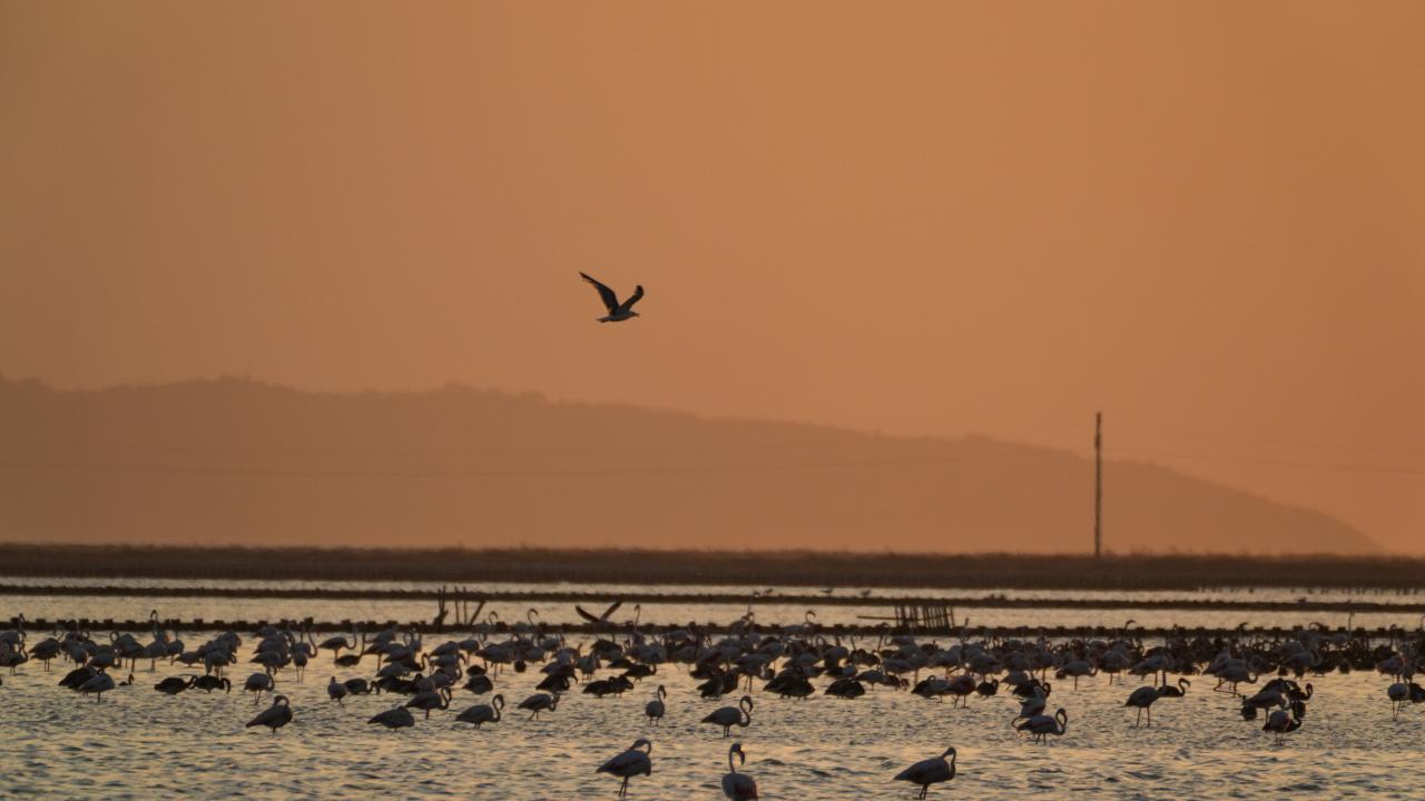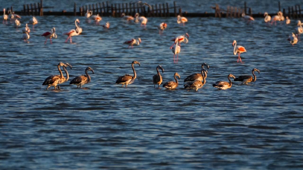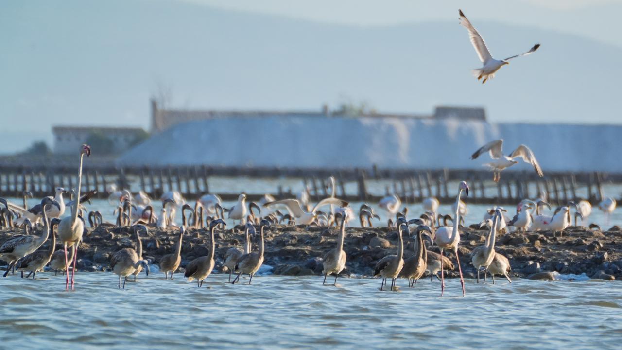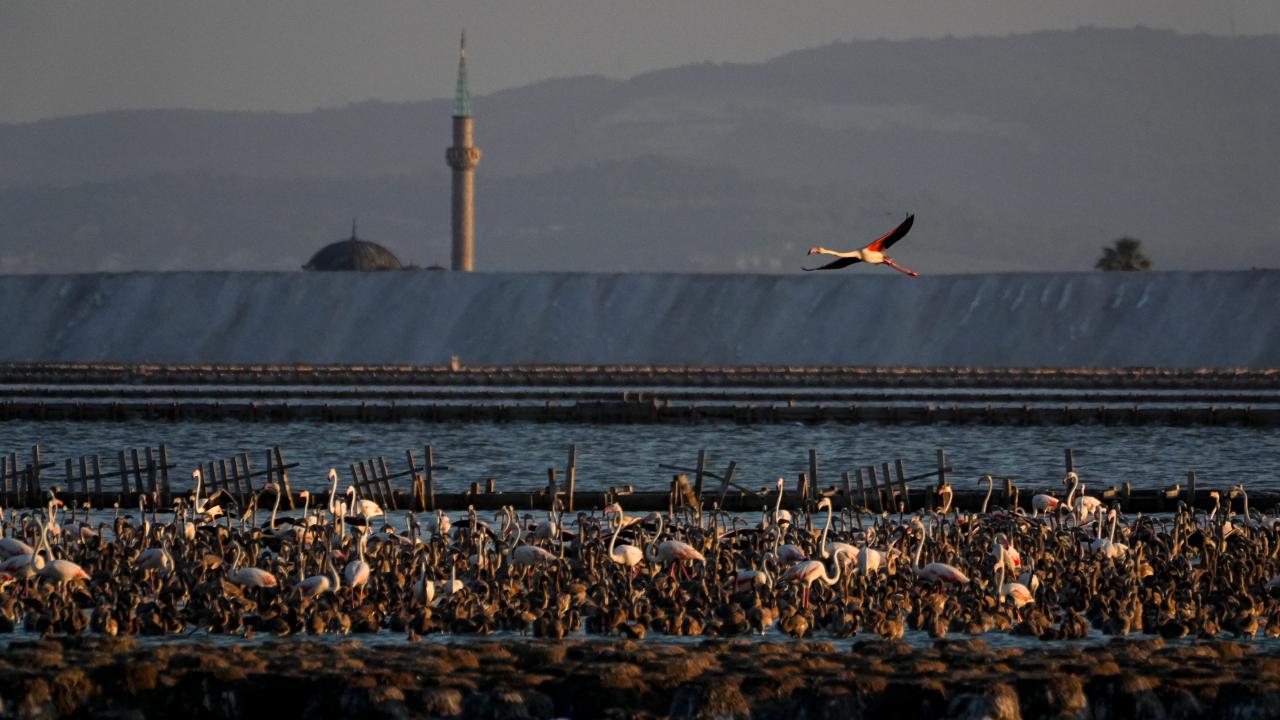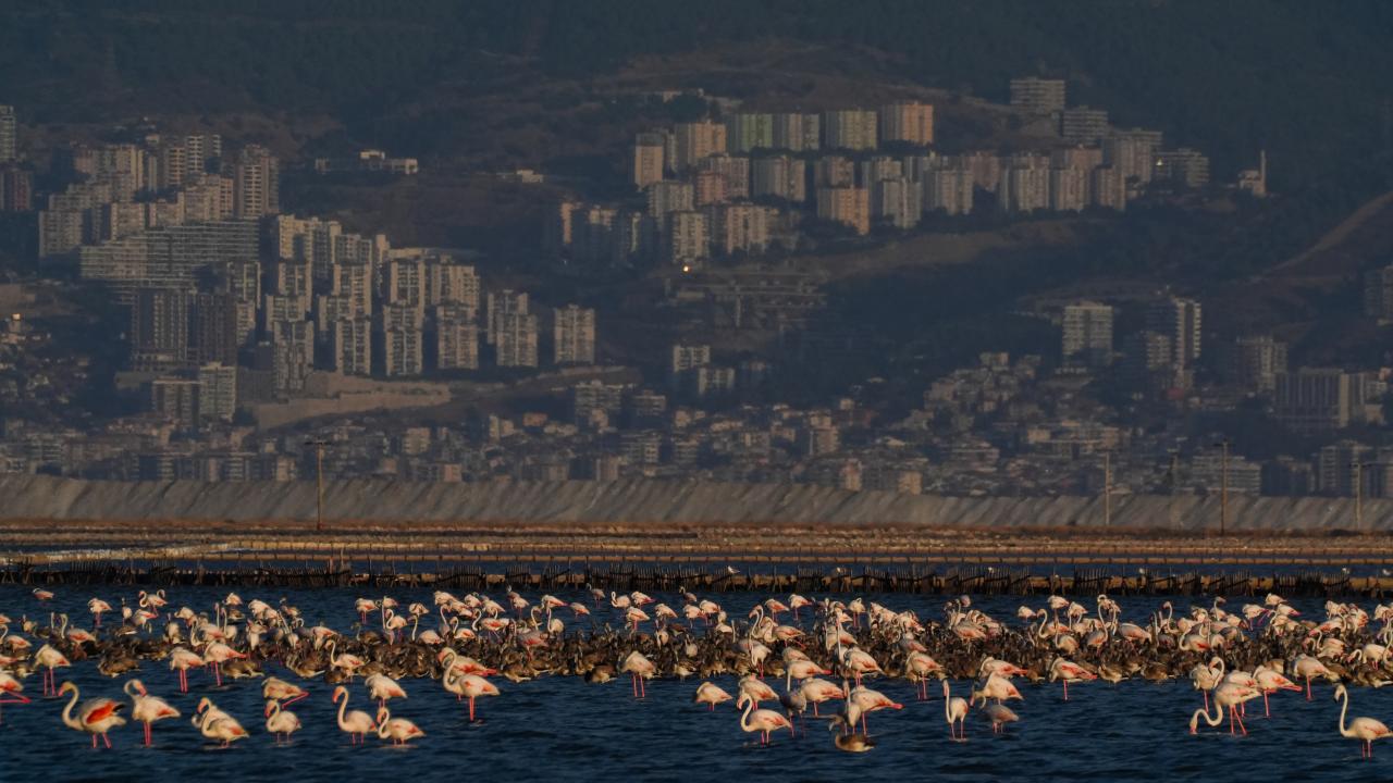İzmir Kuş Cenneti'nde mayıs ayında yumurtadan çıkan binlerce flamingo yavrusu, farklı ülkelere göç için kendileri için "kreş" vazifesi gören kuluçka adasında kanat çırpmayı öğreniyor.