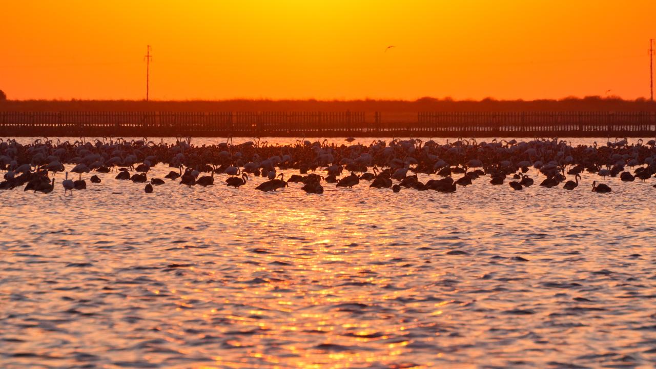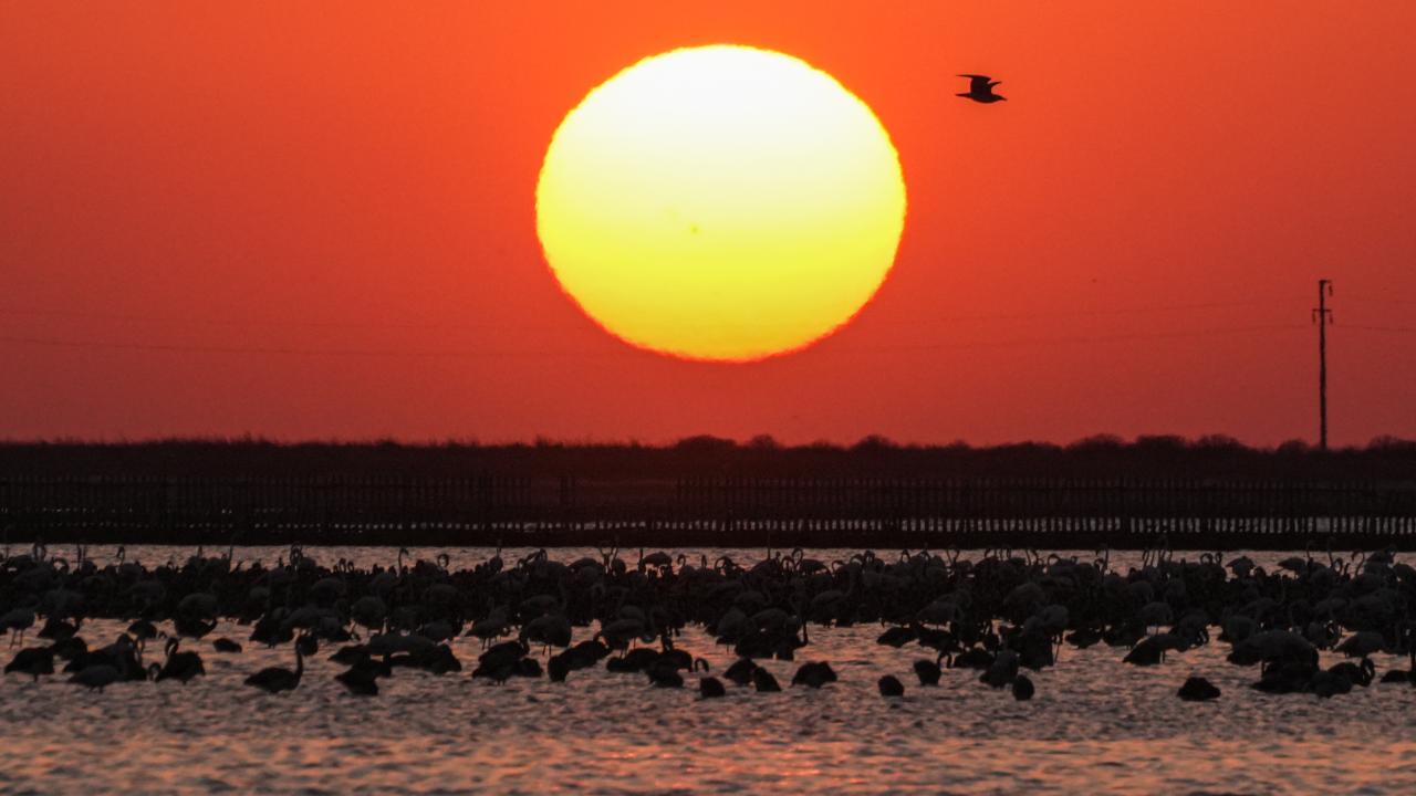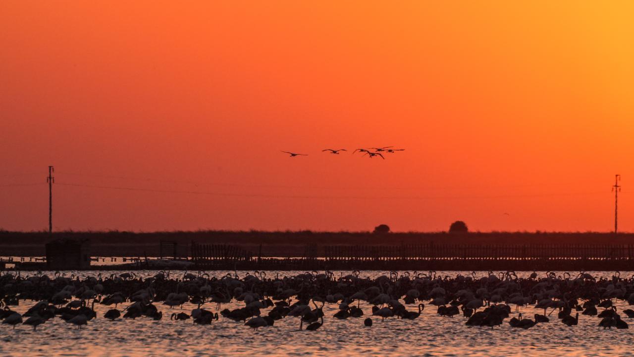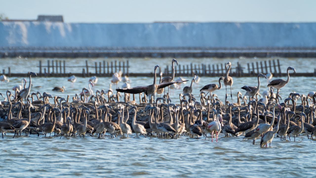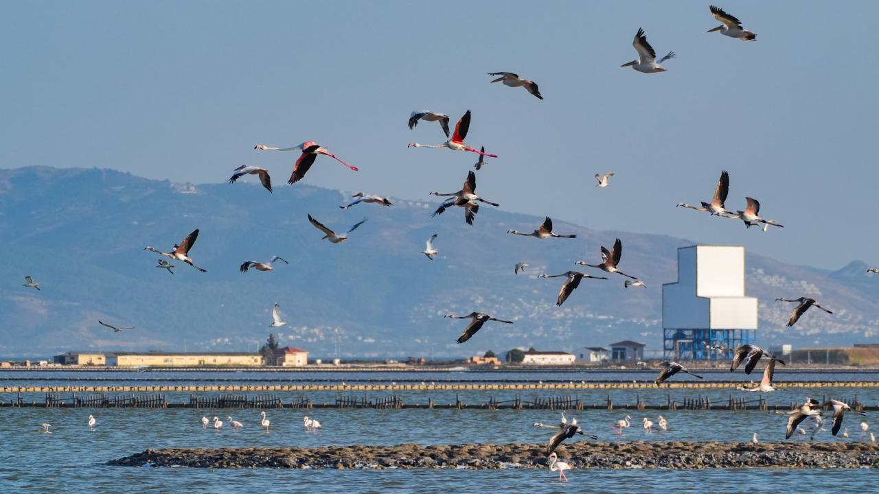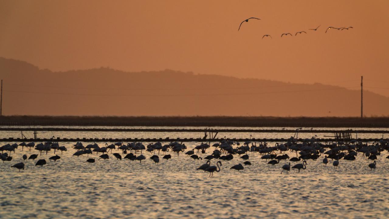 İzmir Kuş Cenneti'nde mayıs ayında yumurtadan çıkan binlerce flamingo yavrusu, farklı ülkelere göç için kendileri için "kreş" vazifesi gören kuluçka adasında kanat çırpmayı öğreniyor.