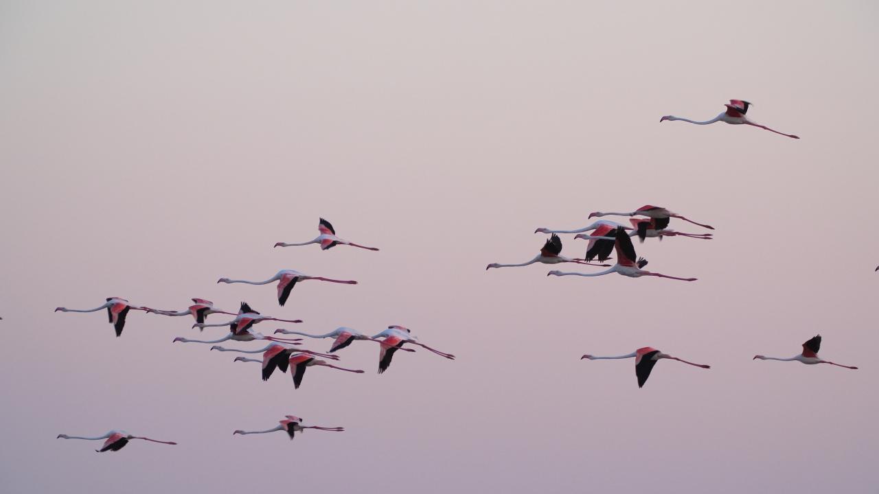 "Flamingolar önce rüzgara karşı kanat çırparak uçma denemelerine başlıyor, sonra da diğer sulak alanlara dağılıyorlar. Flamingolar ülkemizde sadece iki yerde ürüyor. Birisi Tuz Gölü, birisi şu an içinde bulunduğumuz Gediz Deltası. Uçmayı öğrendikten sonra buradan çıkıp Yunanistan, İtalya, Fransa, İspanya, Tunus gibi ülkelere rahatlıkla gidebiliyorlar. Oradan da bize gelebiliyorlar. Örneğin 2019 yılında buradaki yavru flamingolara halkalama çalışması yapıldı. Halkalandıktan 2 ay sonra flamingolardan bir tanesi İtalya`nın Napoli kentine gitmiş. Yine halkalandıktan 2,5 ay sonra Mallorca Adası`na gitmiş, Yani demek ki bunlar 4,5 aylıkken oralara ulaşabiliyor."