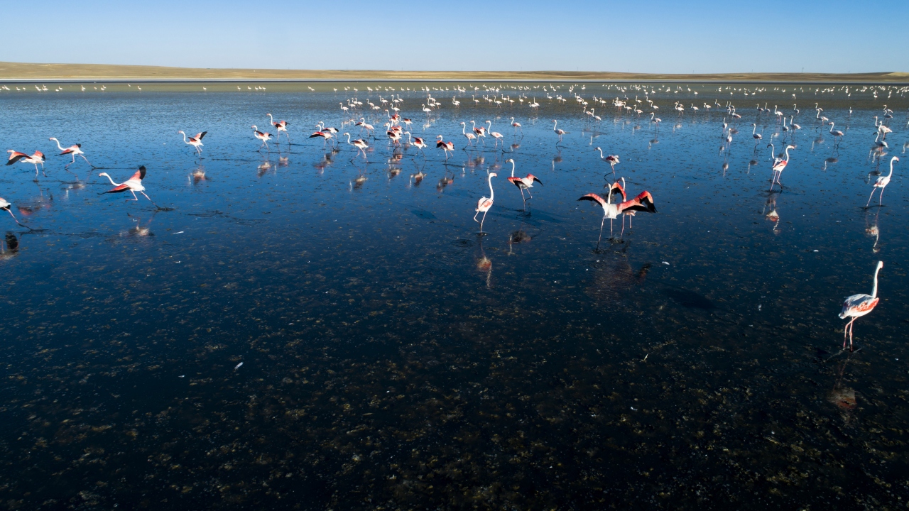Kuşların çoğu flamingo olduğu için `flamingo cenneti` de denilen gölde, kontrolsüz sulama ve küresel ısınmadan kaynaklanan kuraklık meydana gelince kuşların da yaşam alanı daralmaya başladı.