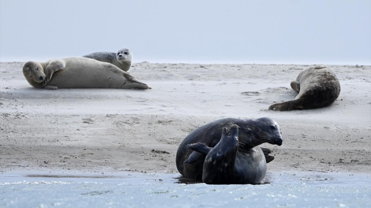 Danimarka'nın Fano adasındaki Sonderho köyünde yaşamını sürdüren fok balıkları, Kuzey Denizi sahilinde doğal ortamında görüntülendi.