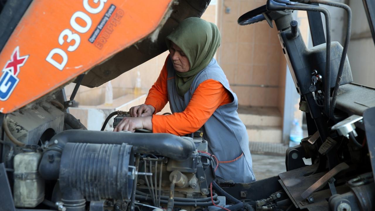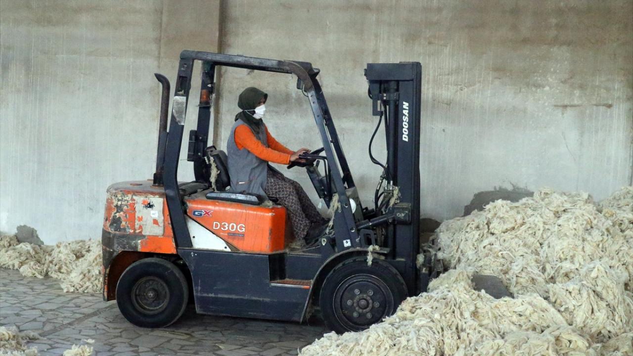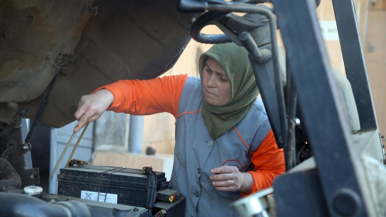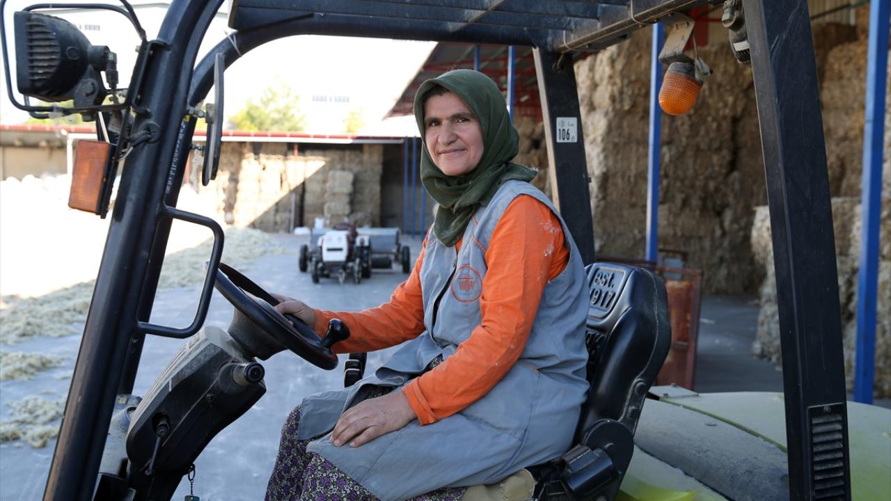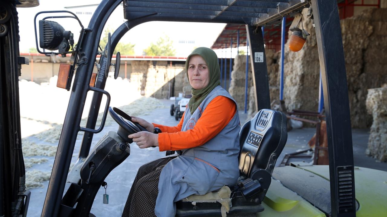 Seri şekilde kontrol ettikleri iş makinesiyle üst üste koydukları balyaları büyük bir ustalıkla taşıyan kadın operatörler, iş bitiminde forkliftlerin bakım ve temizliğini de yapıyor.