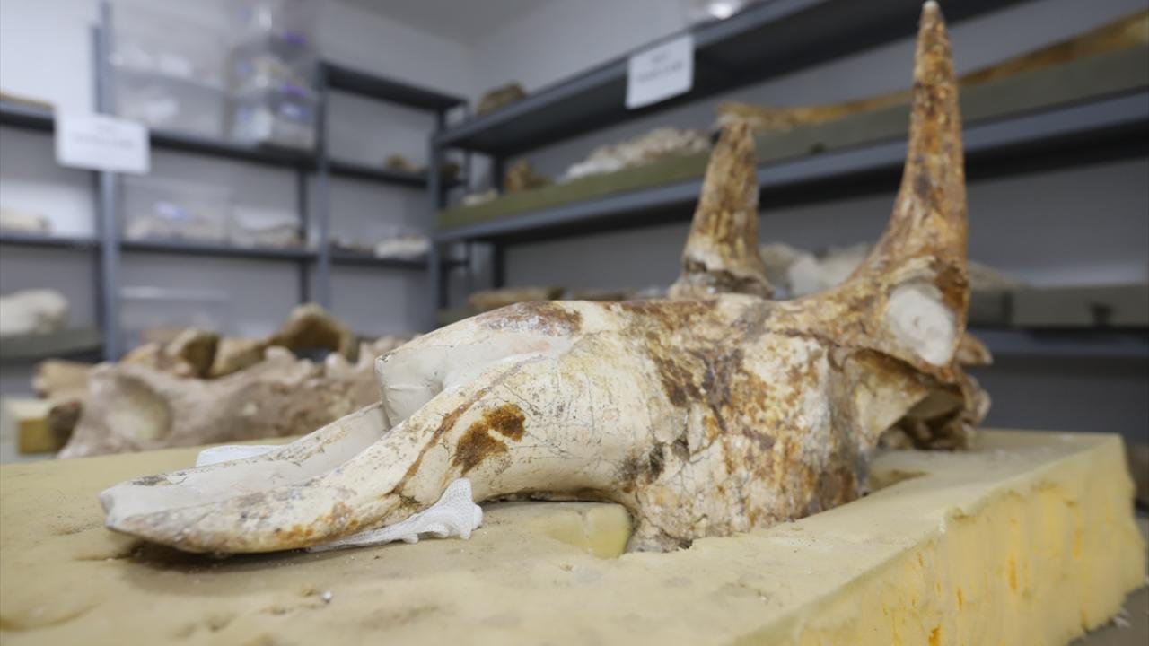 "Kazı çalışmalarımız 2018 yılında başladı. Yaz sezonu boyunca iklim elverişli olduğu müddetçe kazı çalışmalarımıza devam ediyoruz. Yazın kazı çalışmalarımız, kışın da laboratuvar çalışmalarımız devam ediyor. Bilim Merkezindeki laboratuvarda konservasyon ve temizleme işlemlerini yapıyoruz. Genel olarak baktığımızda bizim faunada `Hipperion` isimli ad grubumuzda üç toynaklı atlarımız, gergedanımız, zürafamız var. Fil grubuna ait örneklerimiz var. Günümüzde at tek toynaklıdır. 2 ve 4`üncü parmağı körelmiştir. Tamamen iklim adaptasyonundan dolayı ama bizim o dönemde yaşamış atımız üç toynağa sahip. Günümüz atlarına göre daha kısa."