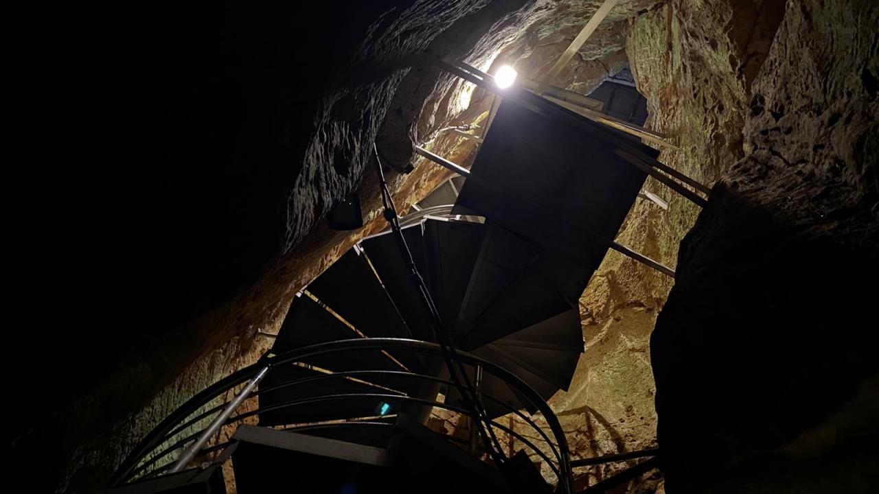 İçine spiral şeklinde demir bir merdivenle iniliyor. Derinliği yaklaşık 15 metreyi bulan mağaranın oluşumu, üçüncü jeolojik döneme kadar uzanıyor.