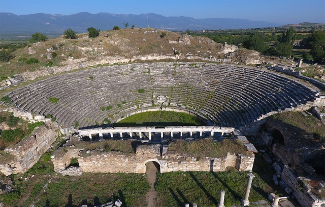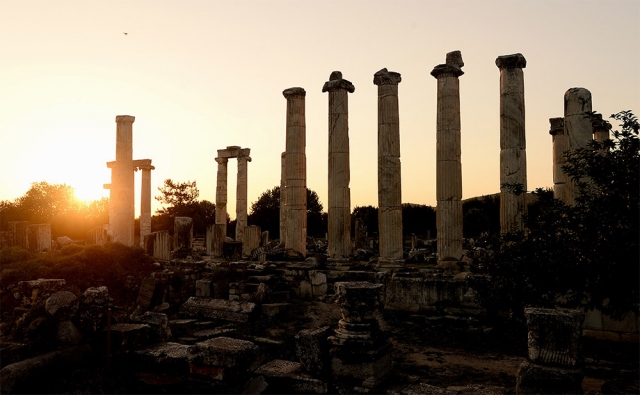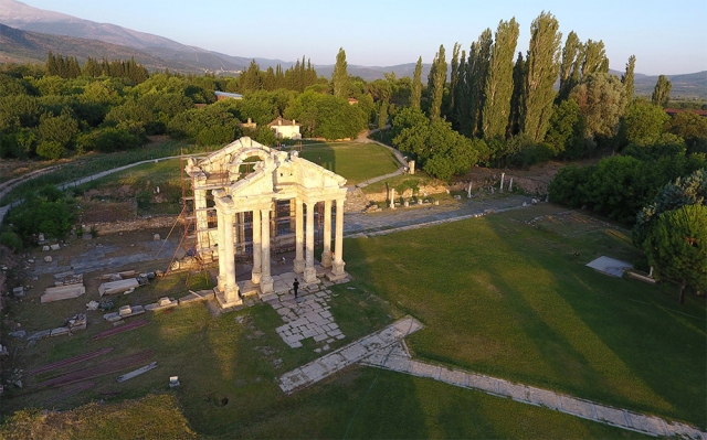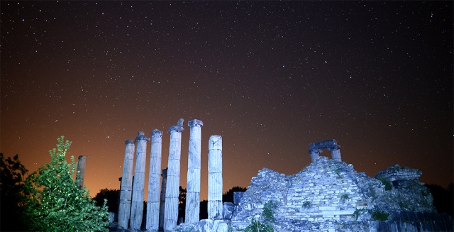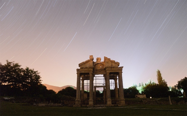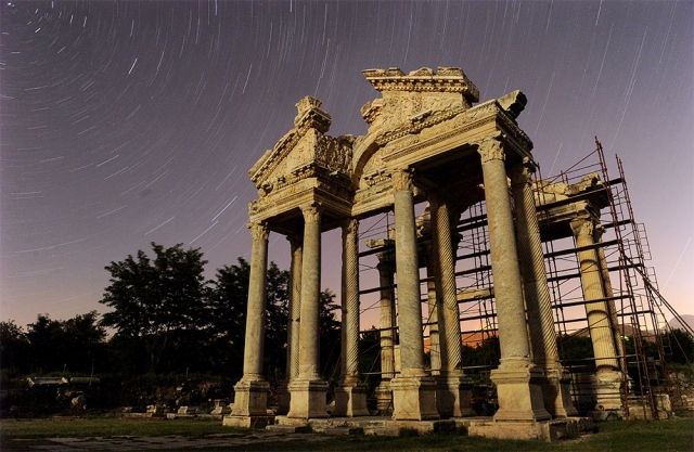 Aydın'ın Karacasu ilçesinde bulunan, adını aşk ve güzellik tanrıçası Afrodit'ten alan Afrodisyas Antik Kenti, gündüz olduğu kadar gece de fotoğraf tutkunlarının uğrak mekanı oluyor. Roma İmparatorluğu dönemine ait antik kent, UNESCO Dünya Kültür Miras Listesi’nde bulunması ve iyi korunmuş anıt yapıları ile dikkati çekiyor.