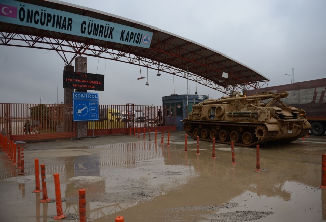 Suriye`de terör örgütü PYD/PKK`nın Afrin`deki mevzilerine Türk Silahlı Kuvvetlerince (TSK), topçu atışı yapılıyor. Öte yandan Öncüpınar Gümrük Kapısı`ndan sınırın diğer tarafındaki birliklere takviye amaçlı askeri araçlar sevk edilmeye devam ediyor.