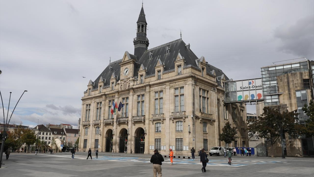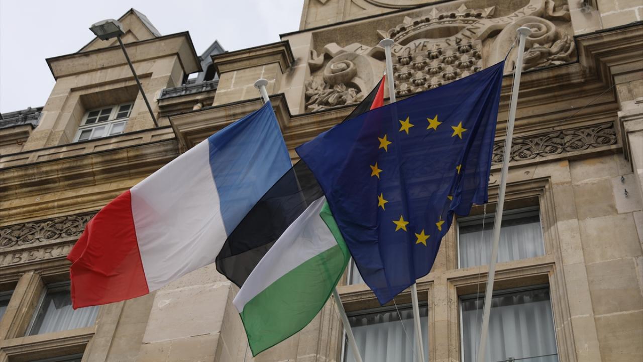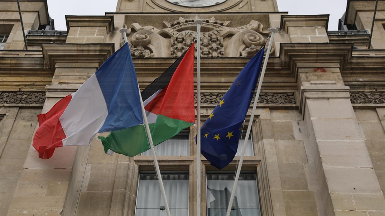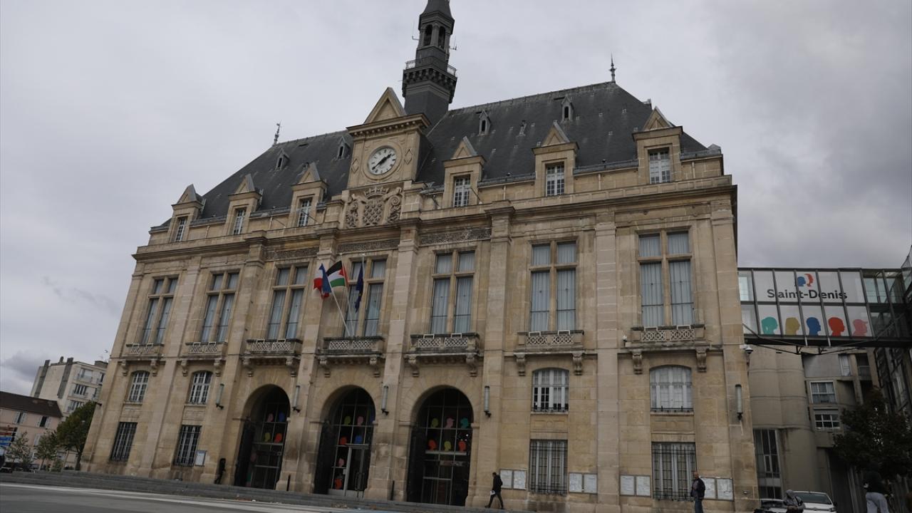 Fransa’nın başkenti Paris yakınlarındaki Saint-Denis Belediye Binası’nın önünde, Fransız ve Avrupa Birliği bayraklarının yanında Filistin bayrağı dalgalandı.