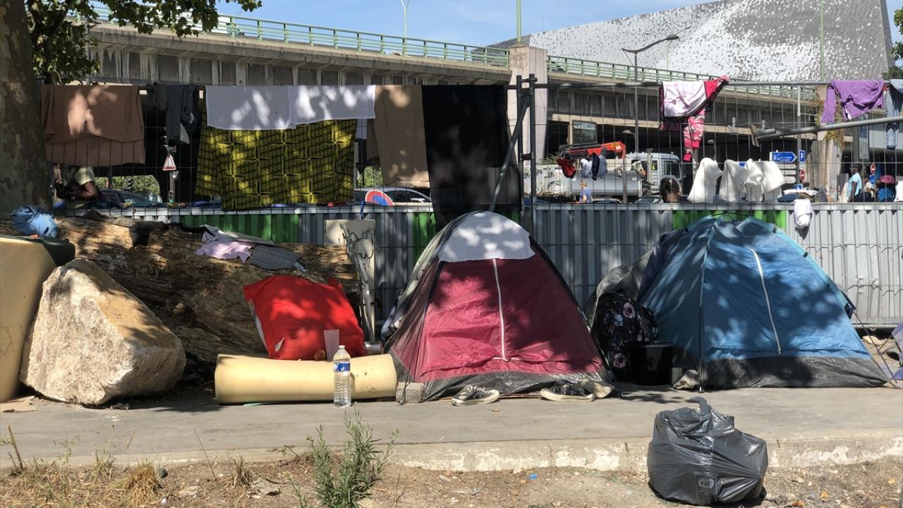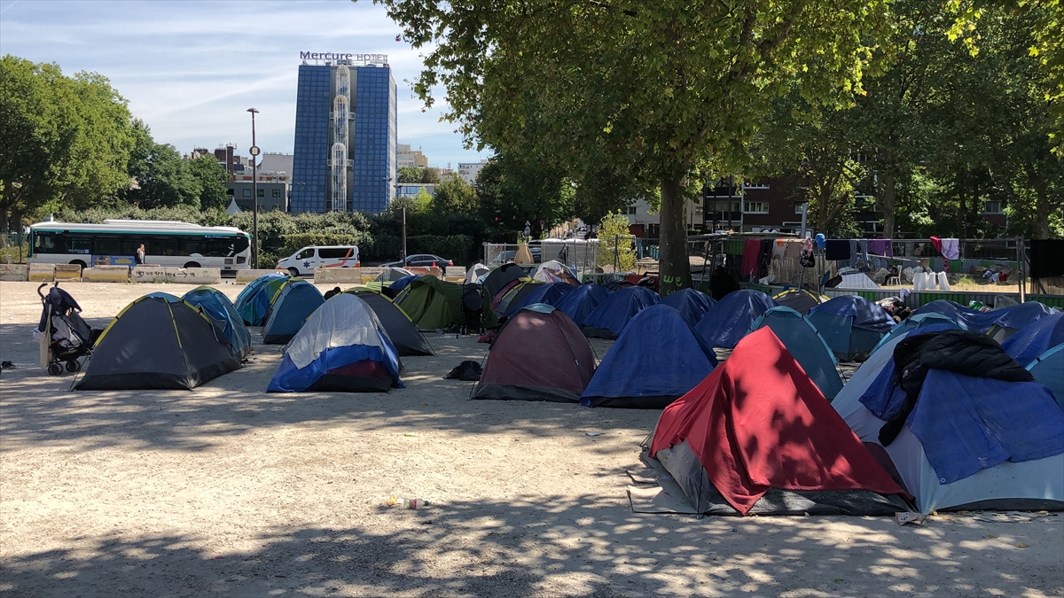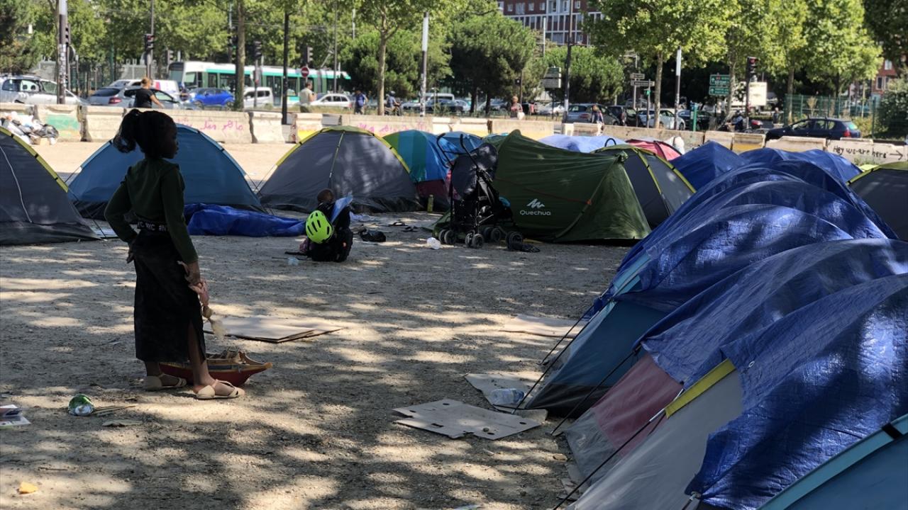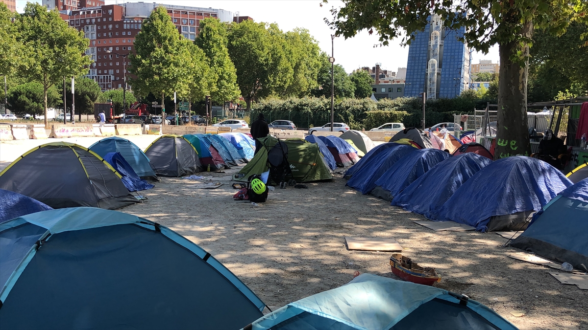 Fransa'nın başkenti Paris'in banliyösü Pantin'de, çoğunlukla çocuklu ailelerden oluşan, aralarında düzensiz göçmenlerin de olduğu evsizler, ülkedeki boğucu sıcak havada çadırlarda hayat mücadelesi veriyor.