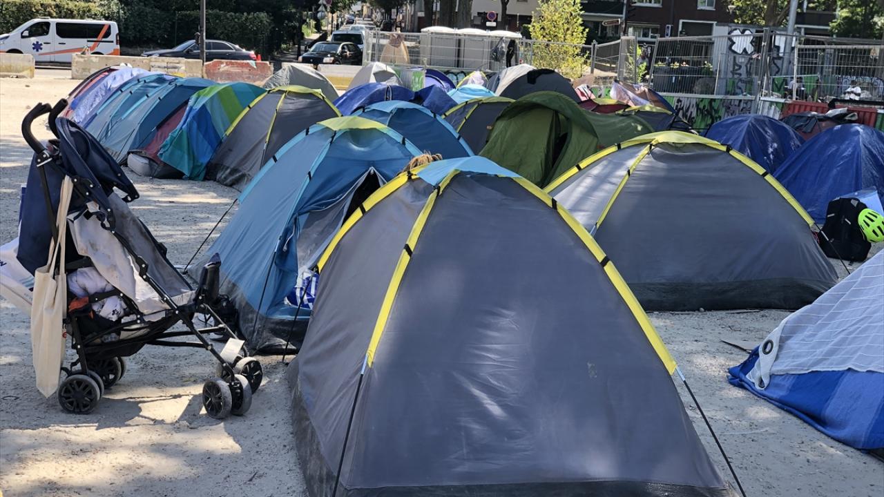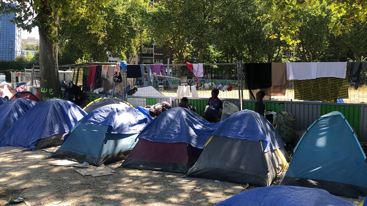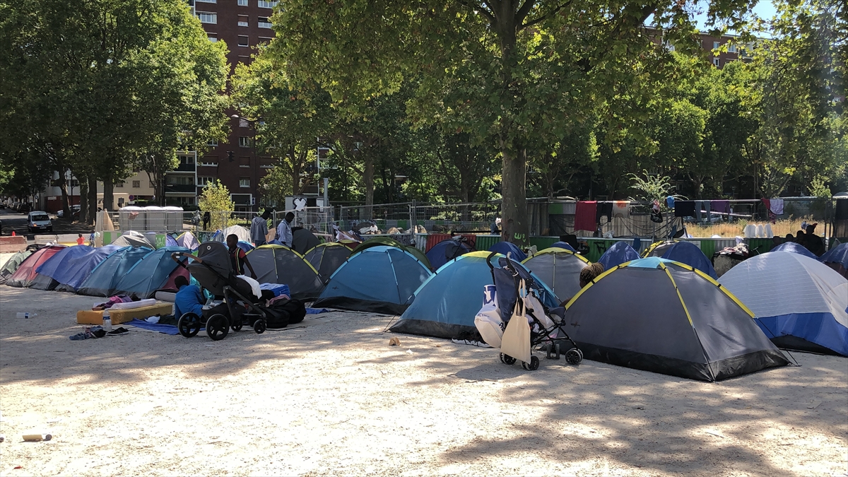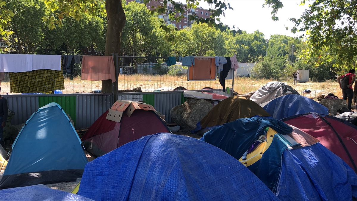 Fransa'nın başkenti Paris'in banliyösü Pantin'de, çoğunlukla çocuklu ailelerden oluşan, aralarında düzensiz göçmenlerin de olduğu evsizler, ülkedeki boğucu sıcak havada çadırlarda hayat mücadelesi veriyor.