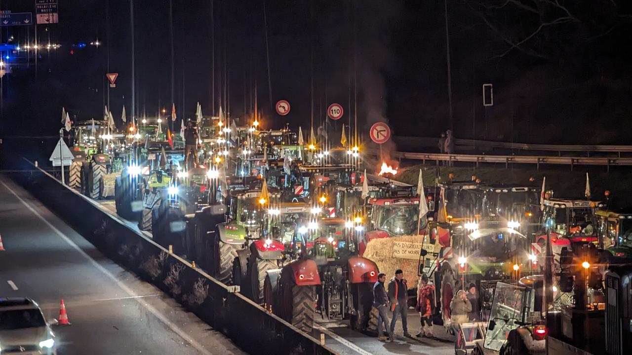 Fransa'nın başkenti Paris'te, Başbakanı Gabriel Attal'ın konuşması ve tarım sektörüne yönelik herhangi bir açıklama yapmaması üzerine çok sayıda çiftçi traktörleriyle konvoy oluşturarak A6 yolunu trafiğe kapattı. Konvoy şu anda Rungis ve Orly havaalanına birkaç kilometre uzaklıktaki Chilly-Mazarin'de bulunan A6 otoyolunun üzerinde bulunuyor ve çiftçiler birkaç gün boyunca bu noktalarda kalmayı planlıyor. Konvoyun, Paris'e doğru daha fazla ilerlemesini önlemek için zırhlı araç da dahil olmak üzer