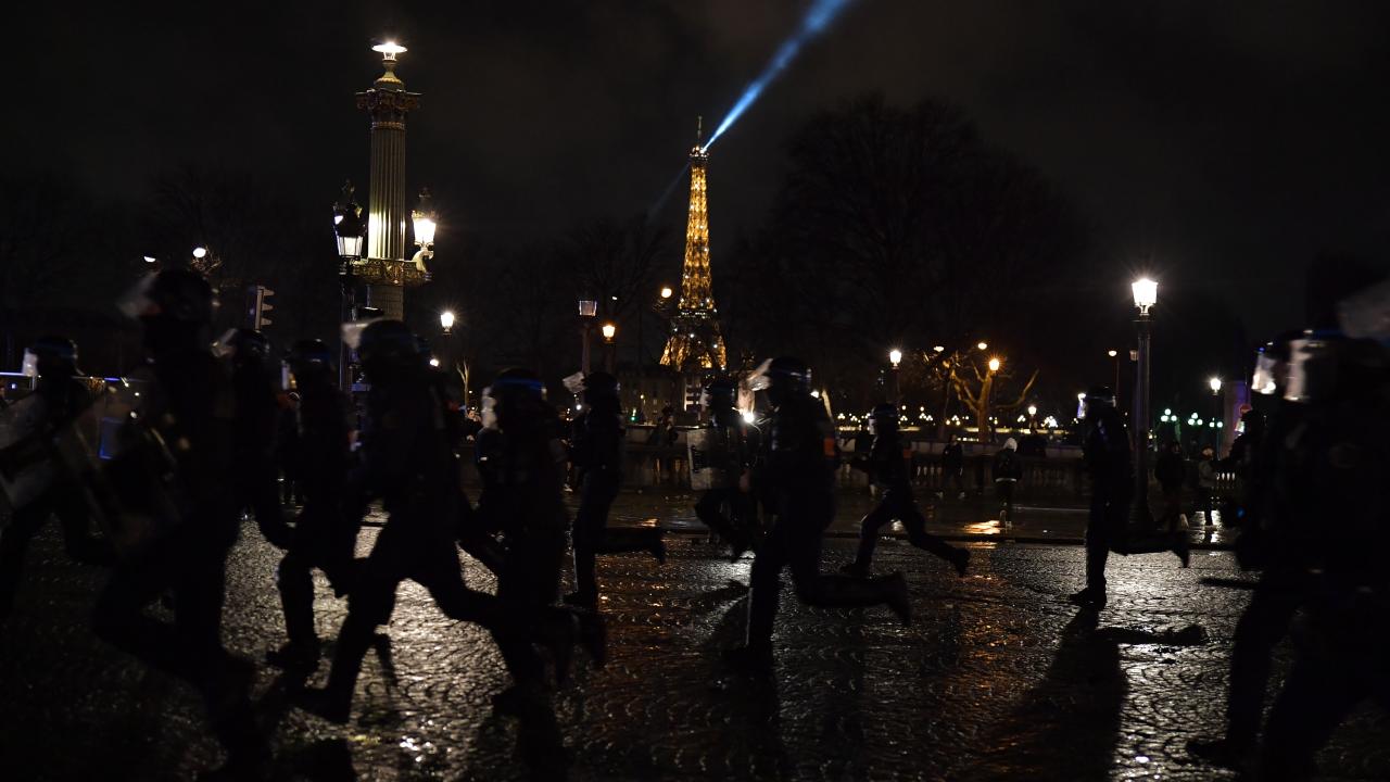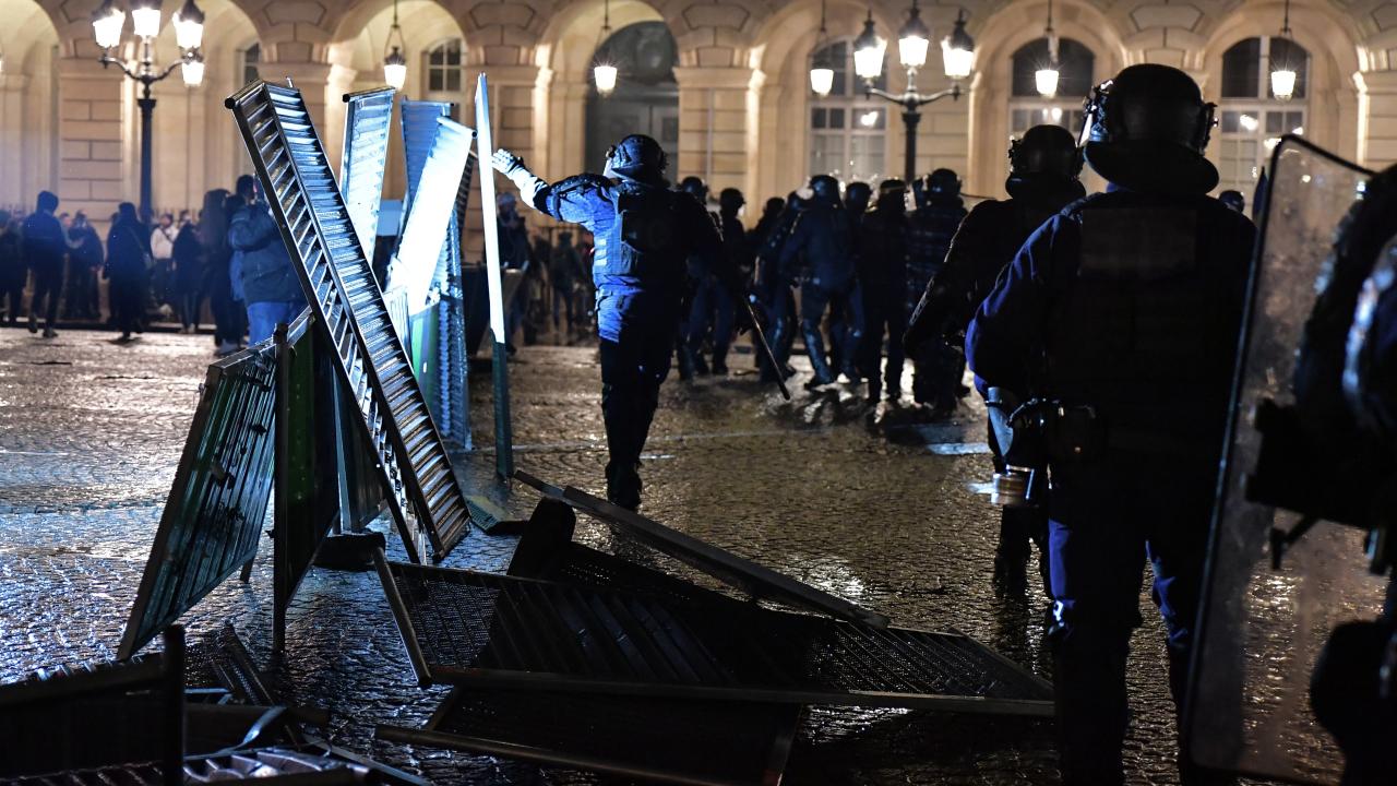 Paris`te polislerin meydandan tahliye ettiği göstericiler, dağıldıkları ara sokaklarda çöp, araç ve bazı kamu mallarını ateşe vermişti.