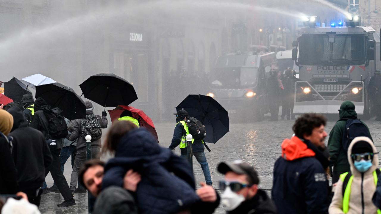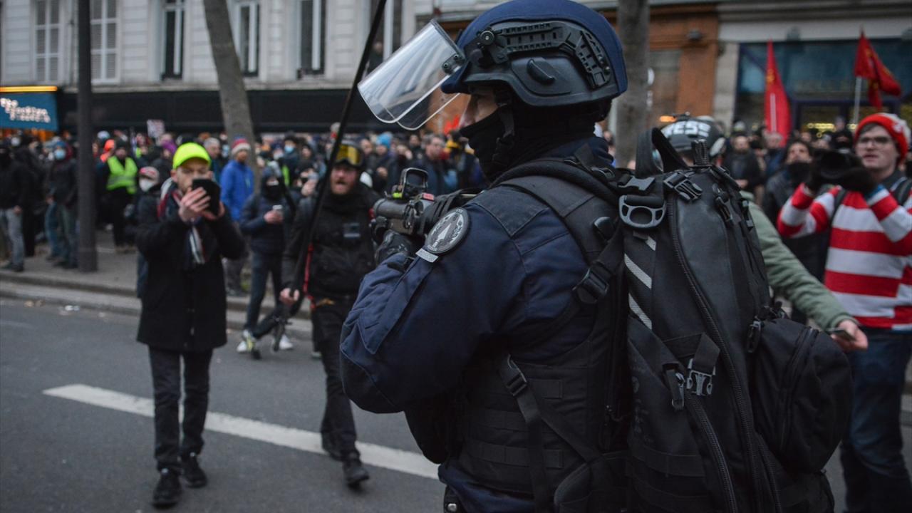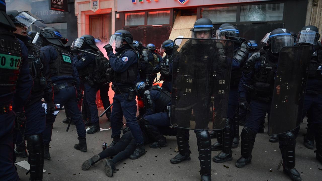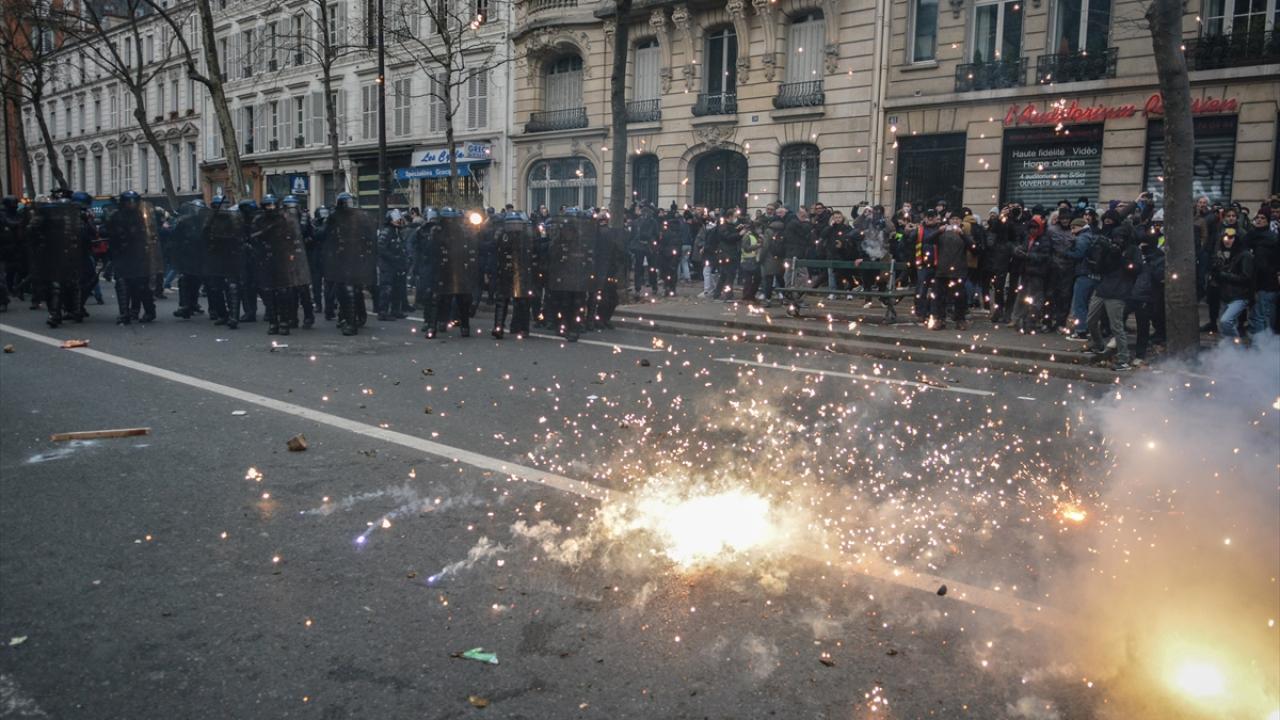 Göstericiler Cumhuriyet Meydanı’nda yürümeye başlarken Bastille Meydanı yakınlarında polis ve göstericiler arasında gerilim yükseldi ve arbede yaşandı.