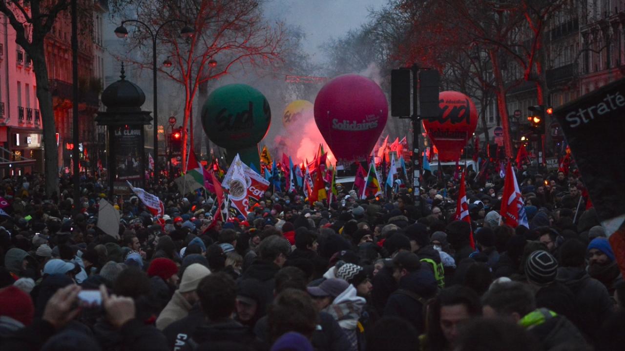 Paris’te iktidarın emeklilik yaşını 64’e çıkarmayı hedefleyen emeklilik reformuna karşı gösteri devam ediyor.