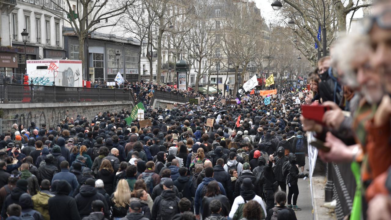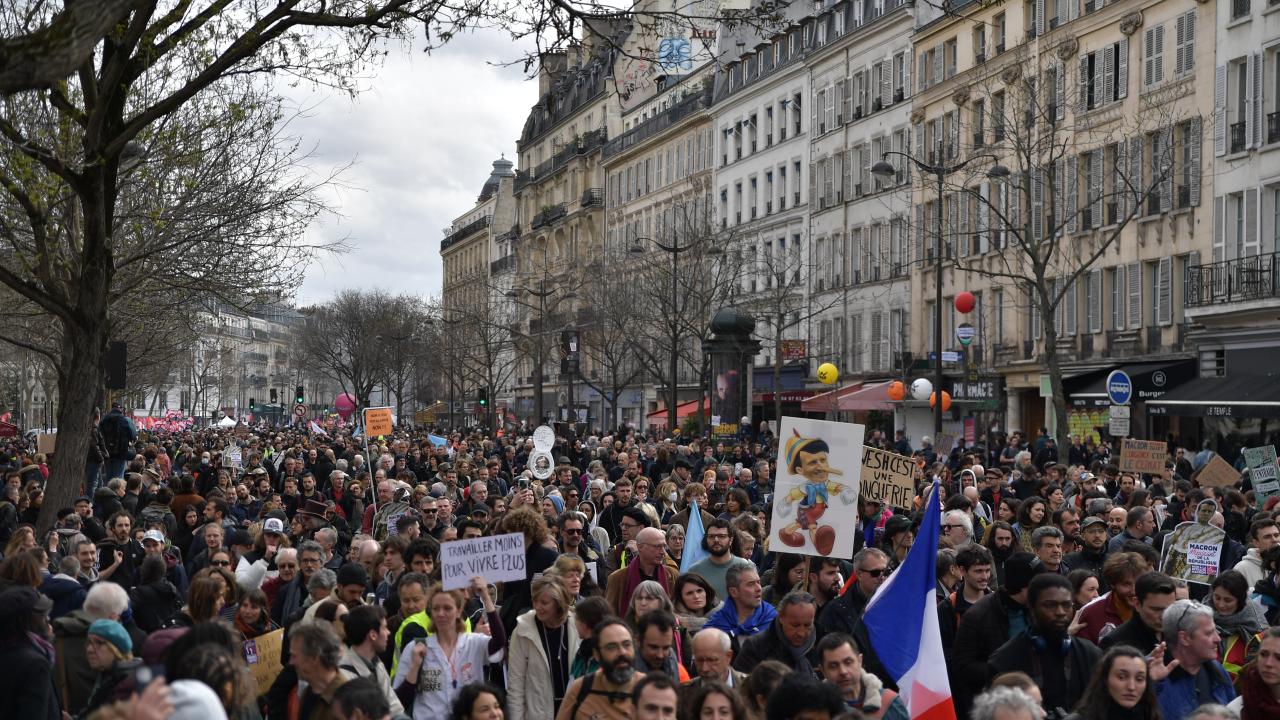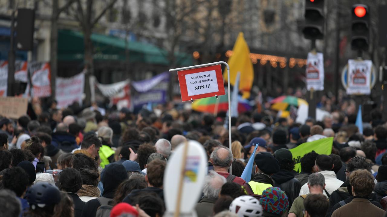 atandaşlar, Başbakan Elisabeth Borne`un reformu mecliste oylamaya sunmadan Anayasa`nın 49. maddesinin 3. fıkrasını devreye alarak kabul ettiklerini açıklaması üzerine başkent Paris`te bir araya gelerek gösteri düzenledi.