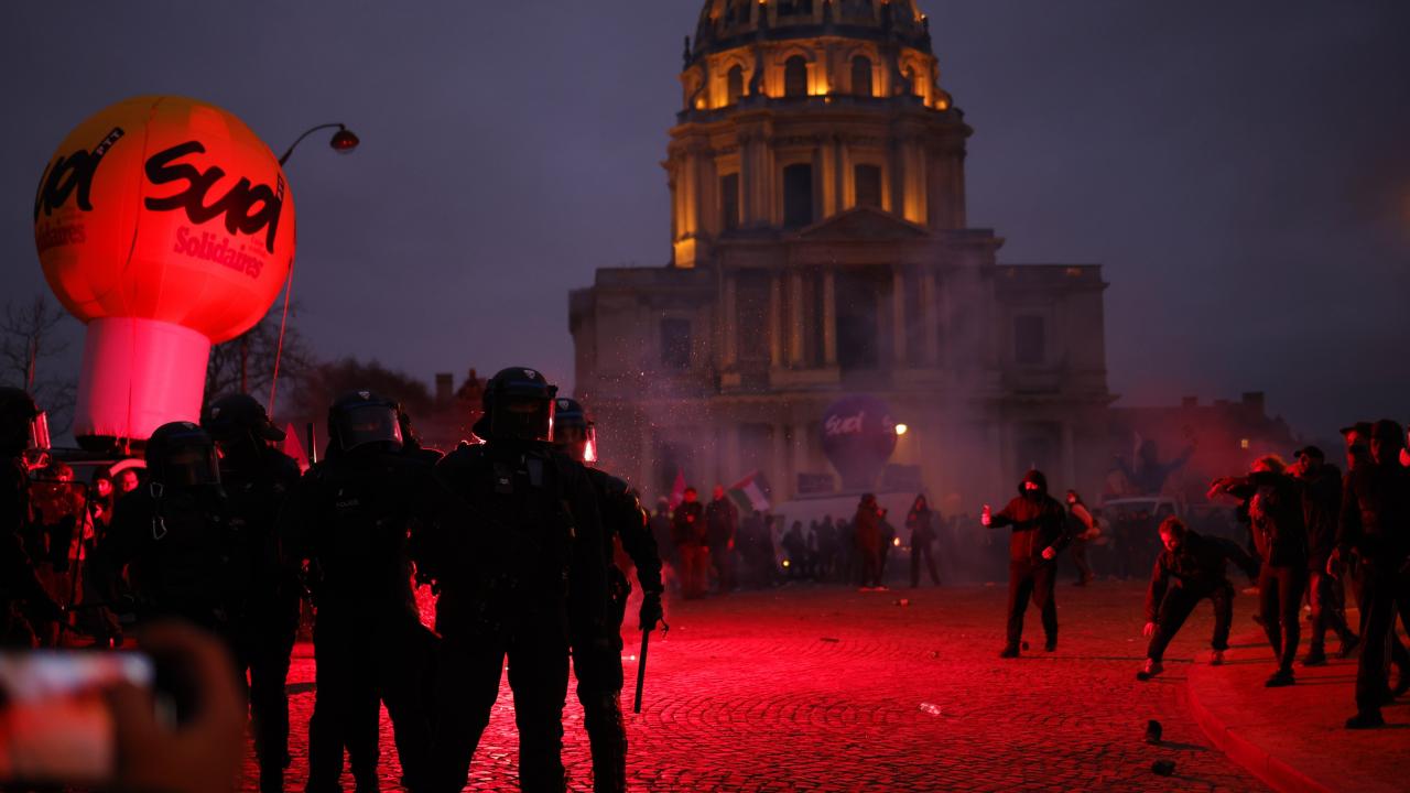 Polis, başkent Paris’te Napolyon`un mezarının bulunduğu Les Invalides’in de aralarında bulunduğu bazı bölgelerde radikal grupları dağıtmak için göz yaşartıcı gaz ve cop kullandı.