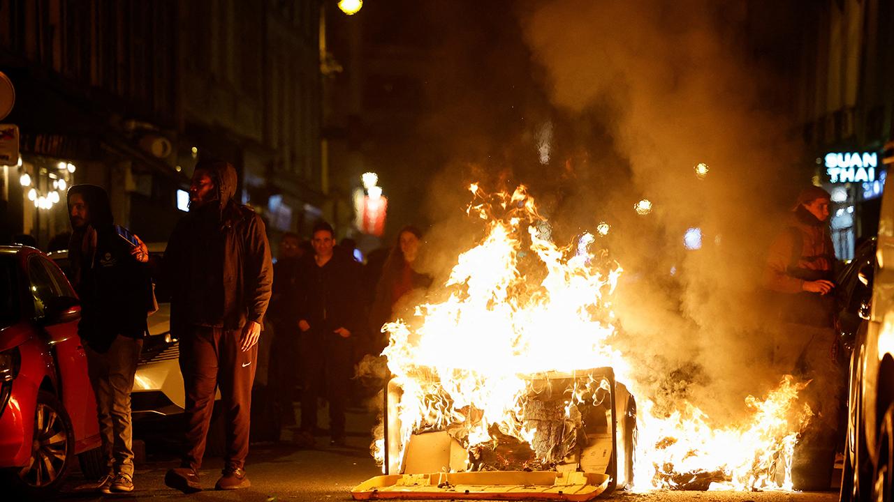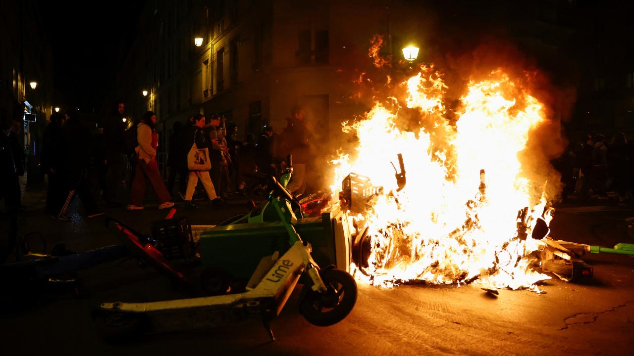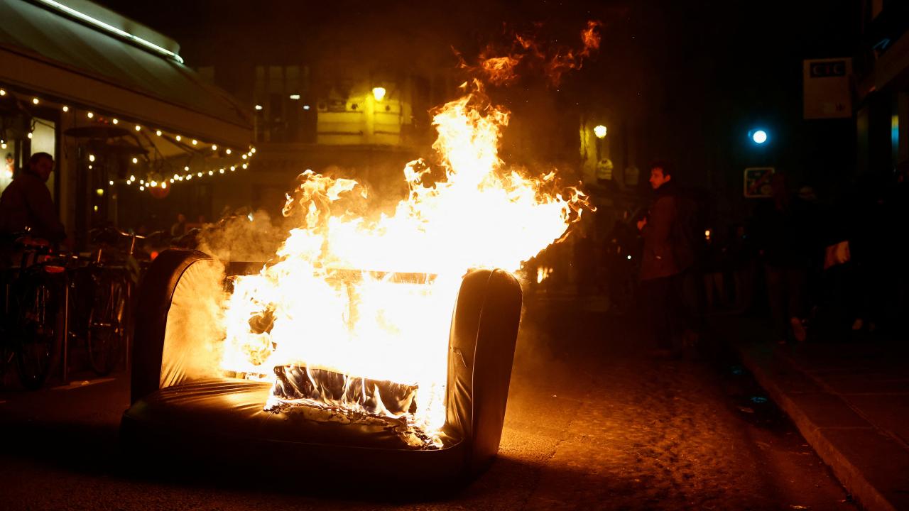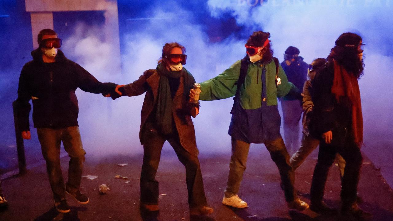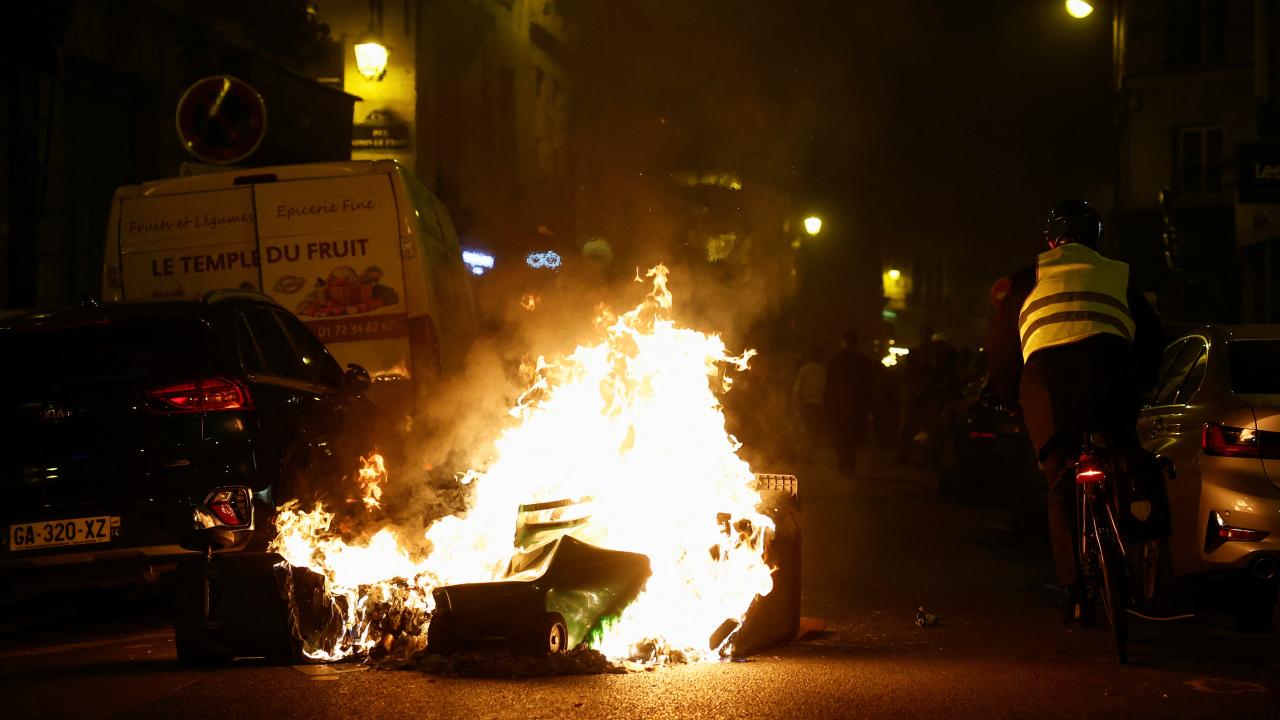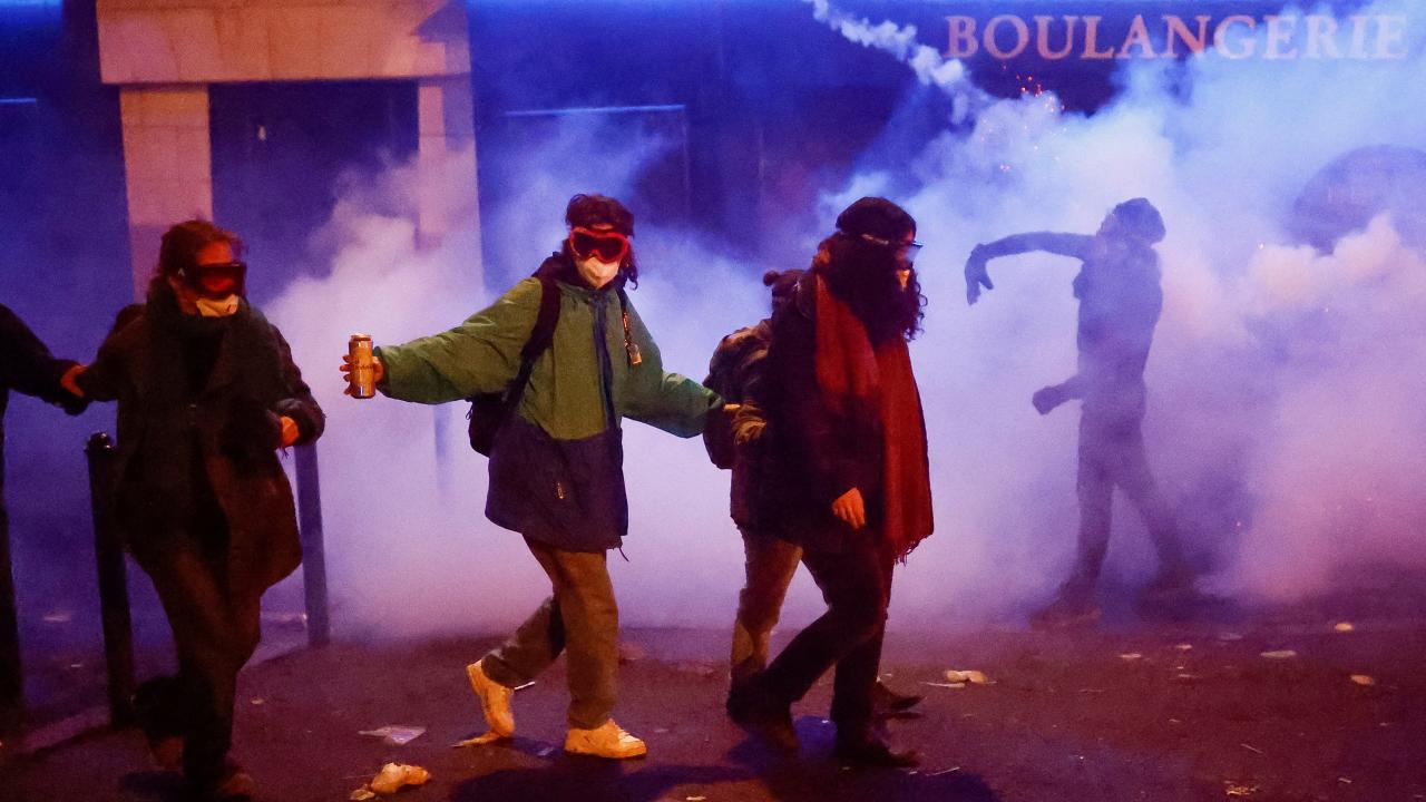 Paris`te göstericiler belediye binasının önündeki meydanda toplanırken, göstericilerin bir kısmı ara sokaklara dağıldı. Protestocular çöp bidonları ve barikatları ateşe verirken, polis biber gazıyla müdahale etti.