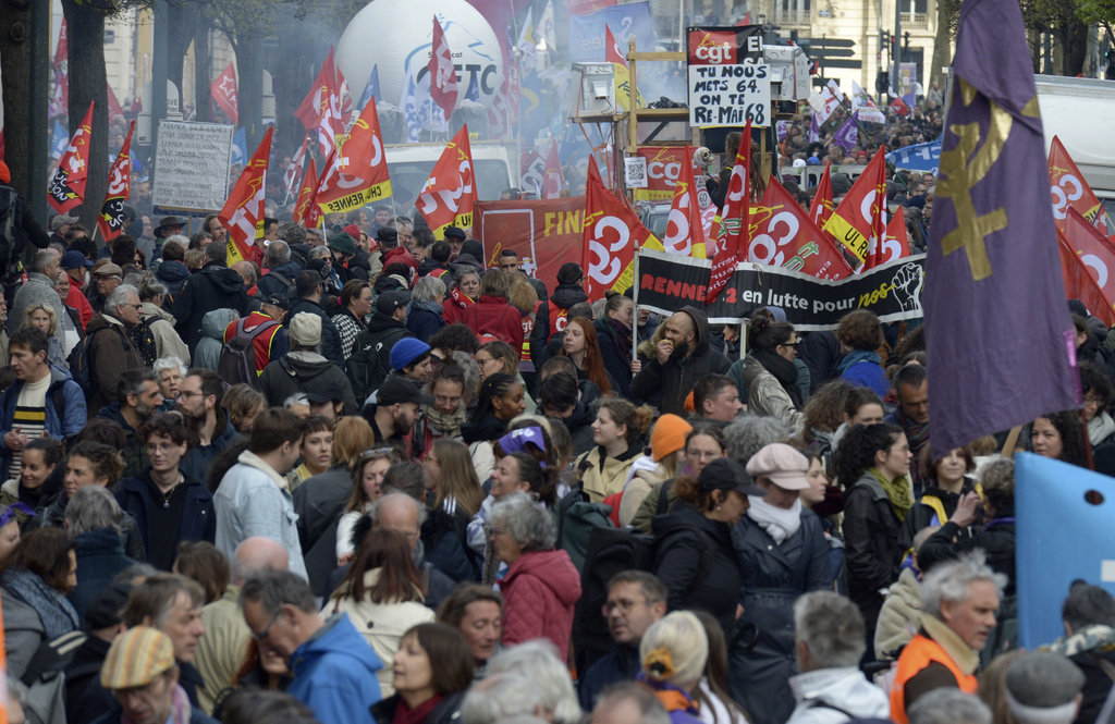 Fransa`da hükümetin emeklilik yaşının 62`den 64`e çıkarılmasını içeren yasa tasarısını oylama yapmadan Meclisten geçirme kararı üzerine 16 Mart`ta başlayan kitlesel gösteriler devam ediyor.