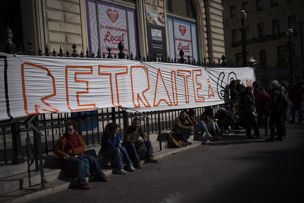 Göstericiler hükümetin emeklilik reformunu geri çekmesini talep ediyor.