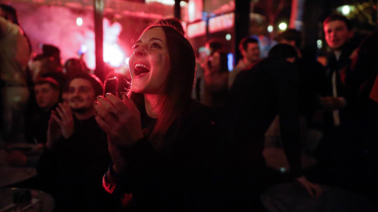 Maçı takip eden Fransız taraftarlar, ikinci yarıda Fransa`nın attığı gollerle büyük coşku yaşadı.