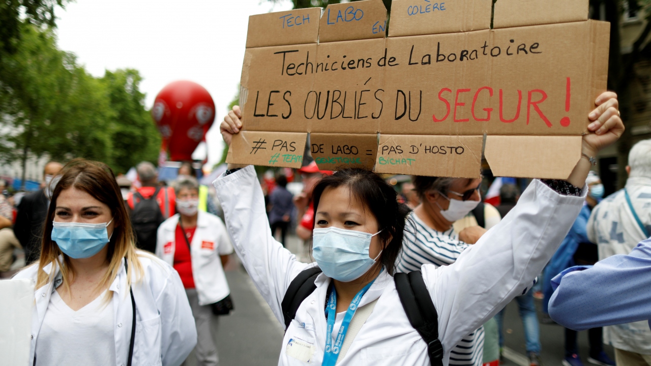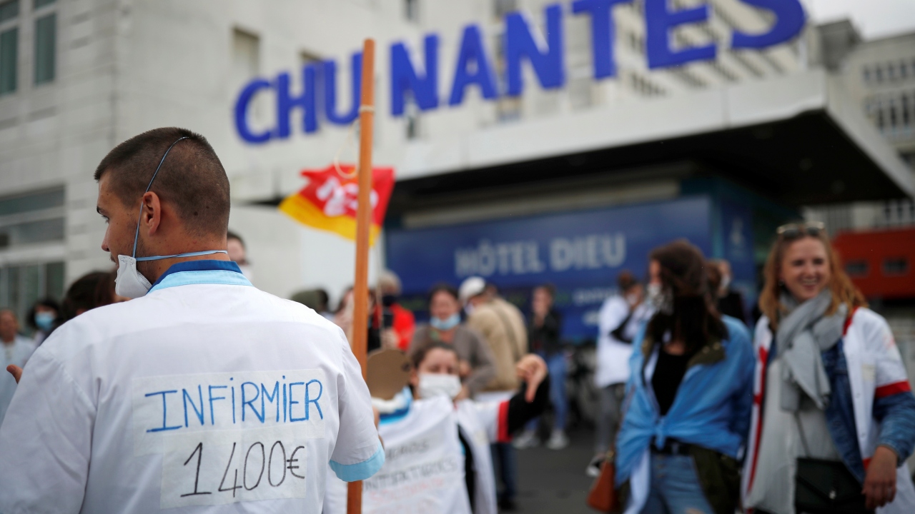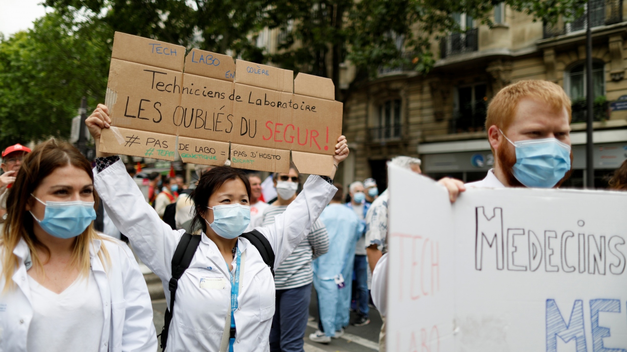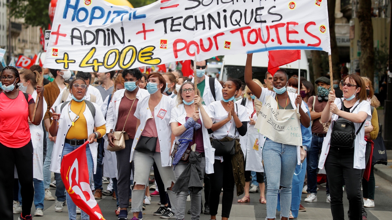 Fransa'da sağlık çalışanları, koronavirüs salgınının ardından hükümeti ücretleri artırmaya ve devlet hastanelerine yatırım yapmaya teşvik etmek için Paris'te protesto düzenledi.