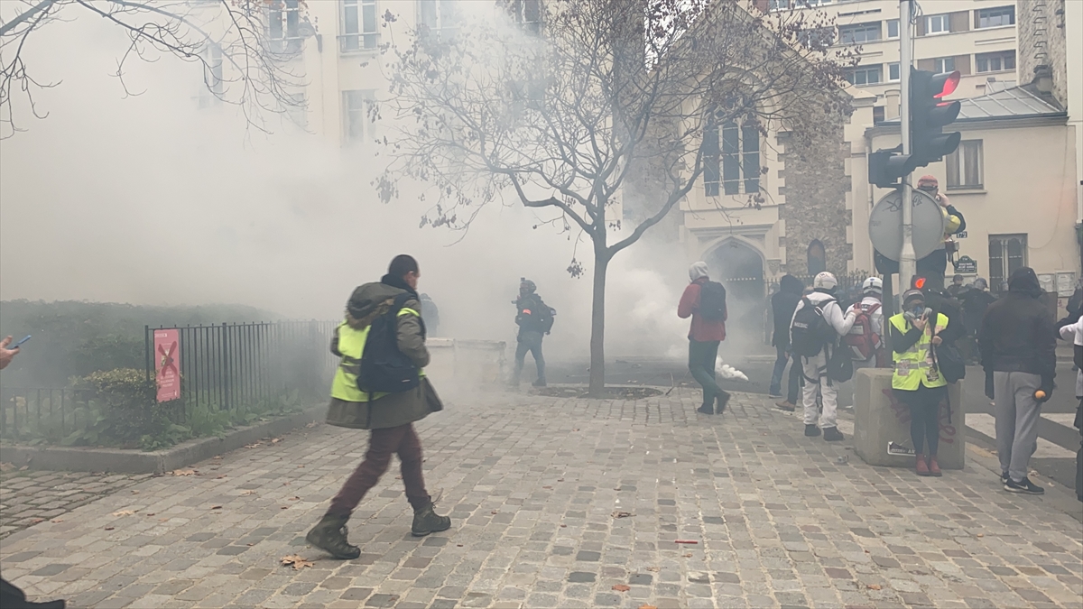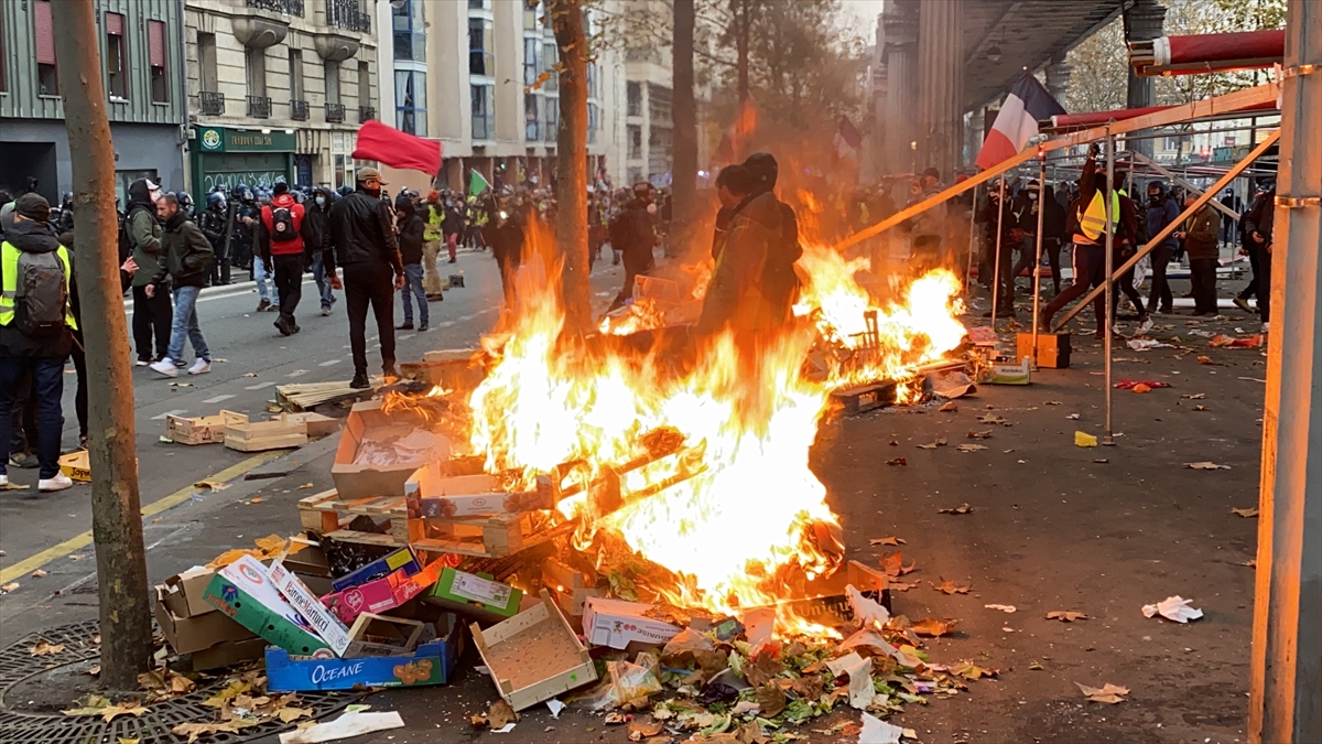 Fransa'da sarı yelekliler, gösterilerinin 3. yılında Cumhurbaşkanı Emmanuel Macron yönetiminin politikalarını protesto etmek için ülke genelinde sokağa çıkarken, başkent Paris'teki eylemde şiddet olayları çıktı.