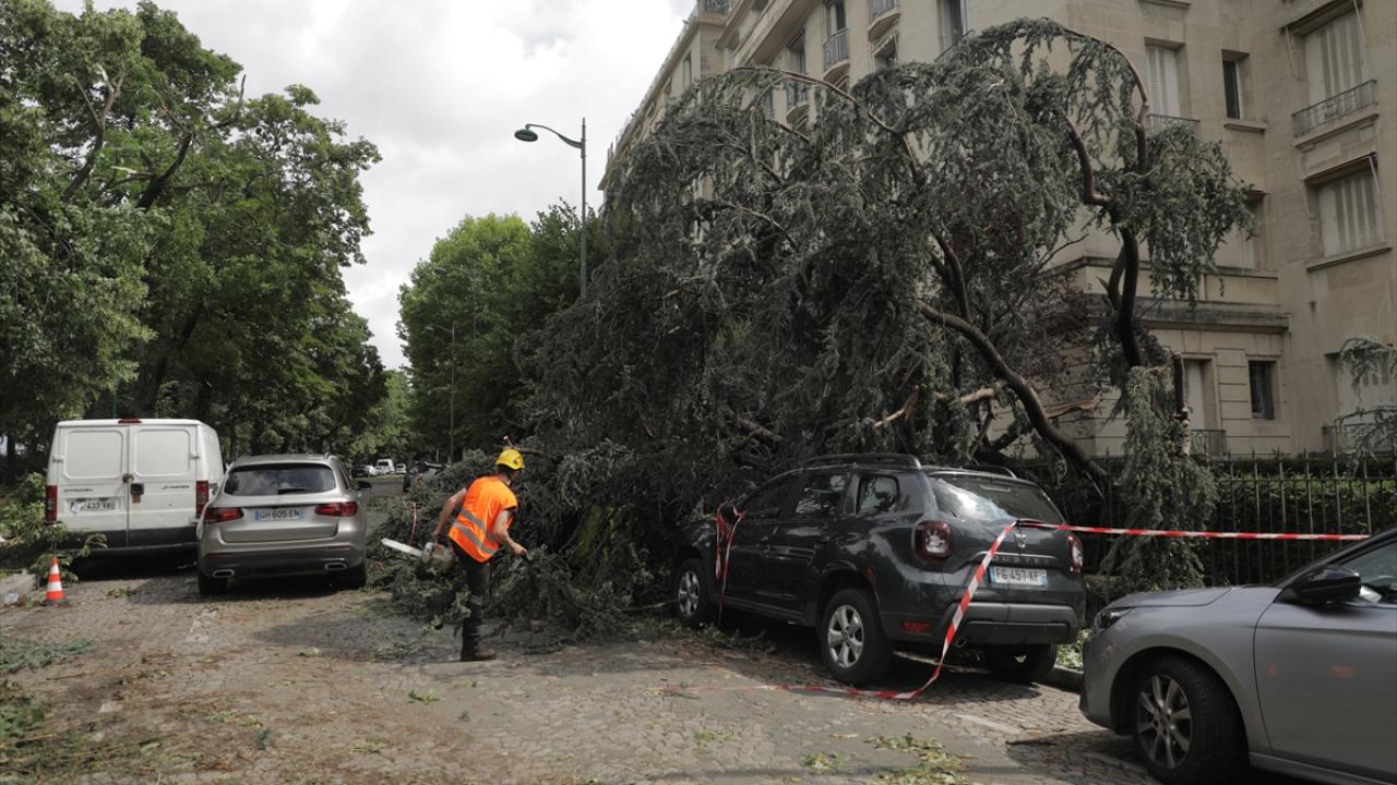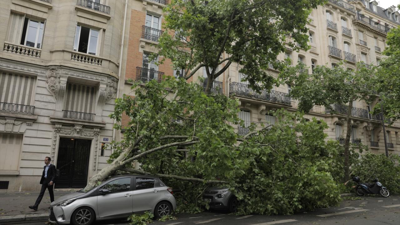 Fransa'nın başkenti Paris'te gece saatlerinde etkili olan şiddetli fırtına, kentte hayatı olumsuz etkiledi.