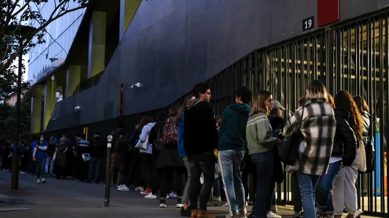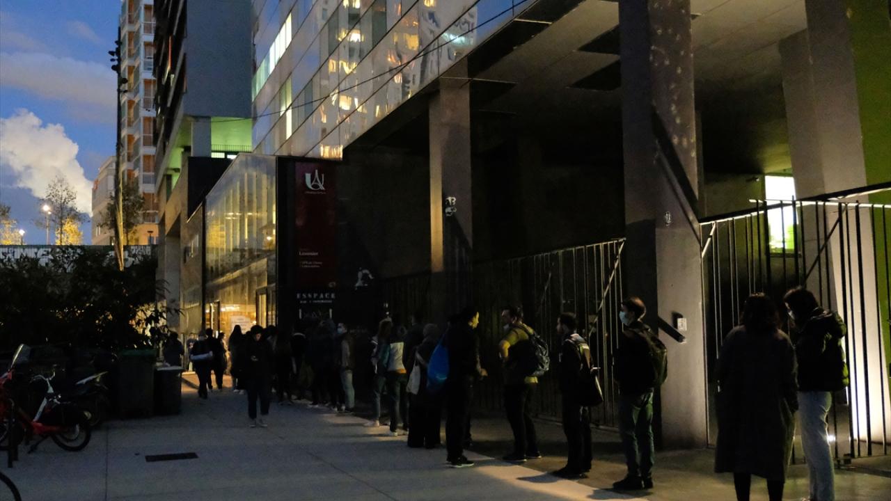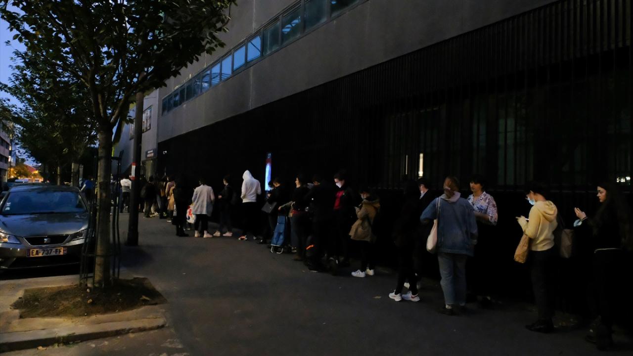 Başkent Paris`te, Linkee Derneğinin hazırladığı gıda paketini almak için öğrenciler metrelerce kuyruk oluşturdu.