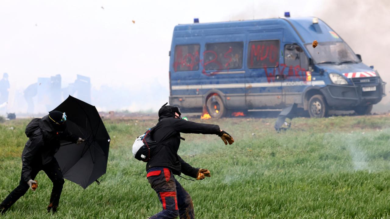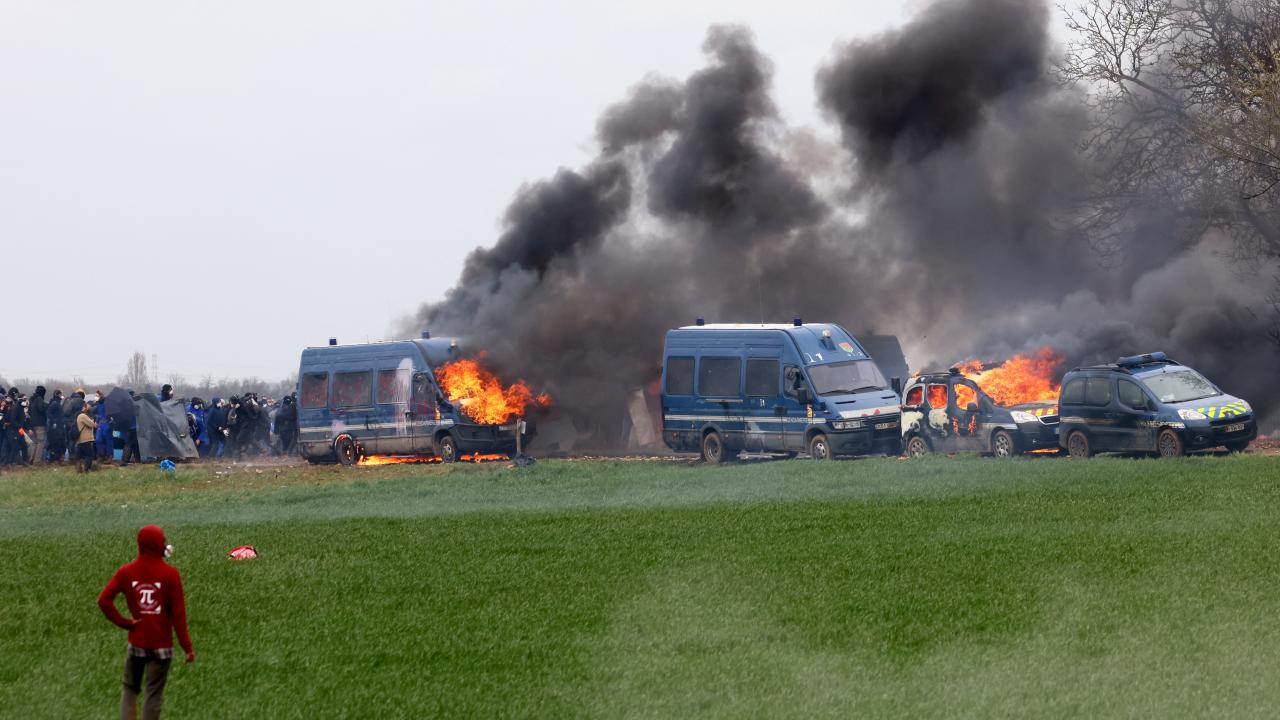 Fransa`da binlerce çevreci, 16 yapay su havzası inşaatı projesini, ülkenin Deux-Sevres vilayetinde Saint-Soline köyünde protesto etti.