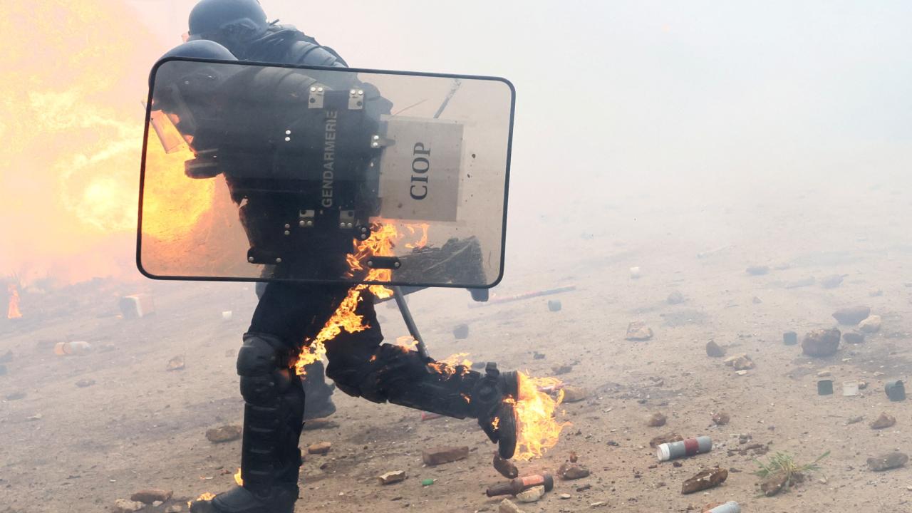 Darmanin, "radikal" eylemcilerin çok sayıda jandarma aracını ateşe verdiğini ve jandarmalara molotof kokteyli, maytap, bıçak gibi cisimler fırlattığını belirtti. Darmanin, jandarmaların çok sayıda plastik el bombası kullandığını dile getirdi.