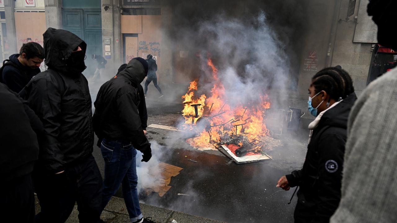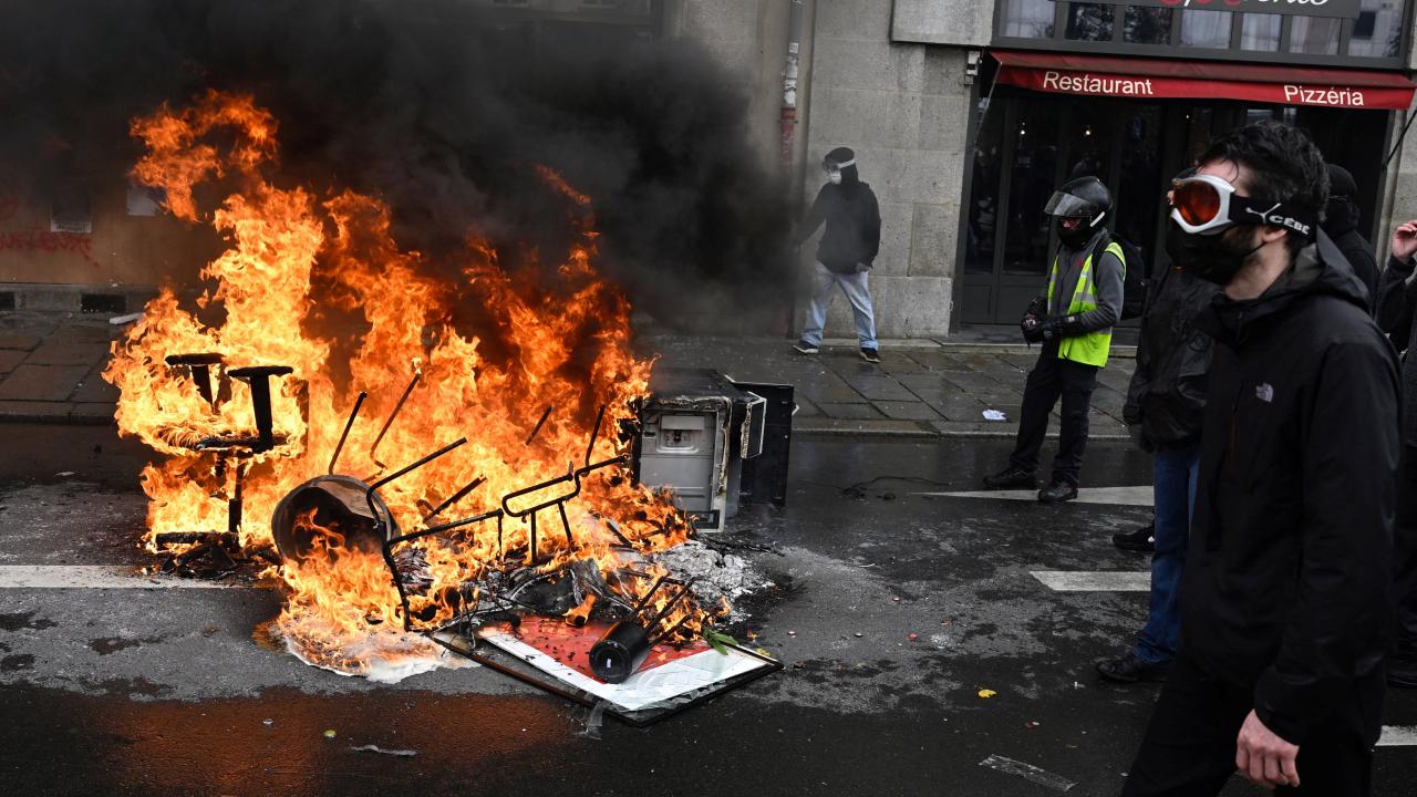 Bordeaux belediye binası ve Lorient`teki bir polis karakolu da dahil olmak üzere kamu binaları da hedef alındı. İçişleri bakanlığı "aşırı sol" grupları suçladı.