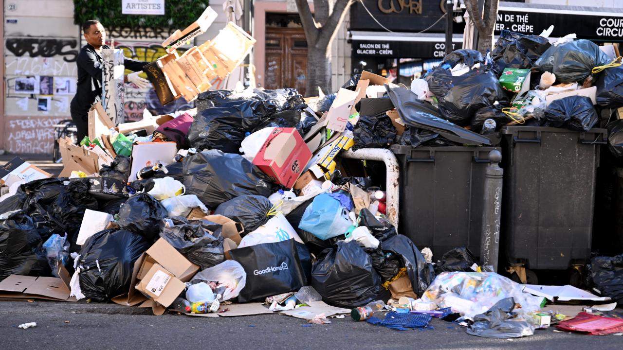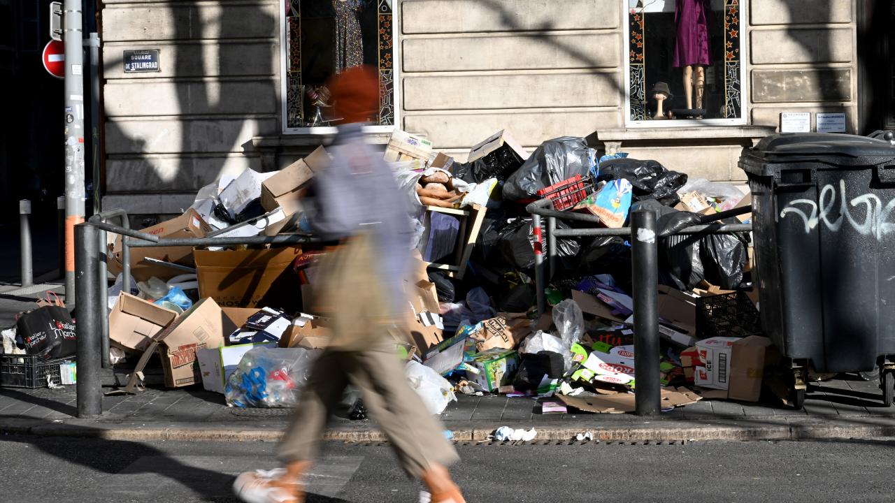 Paris`te çöp grevlerinden sonra şehrin yarısında 8 bin ton çöpün hala sokaklarda beklediği görüldü.