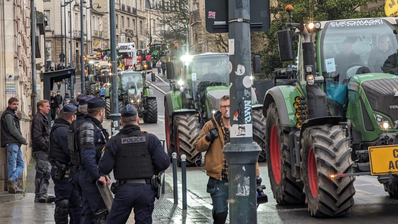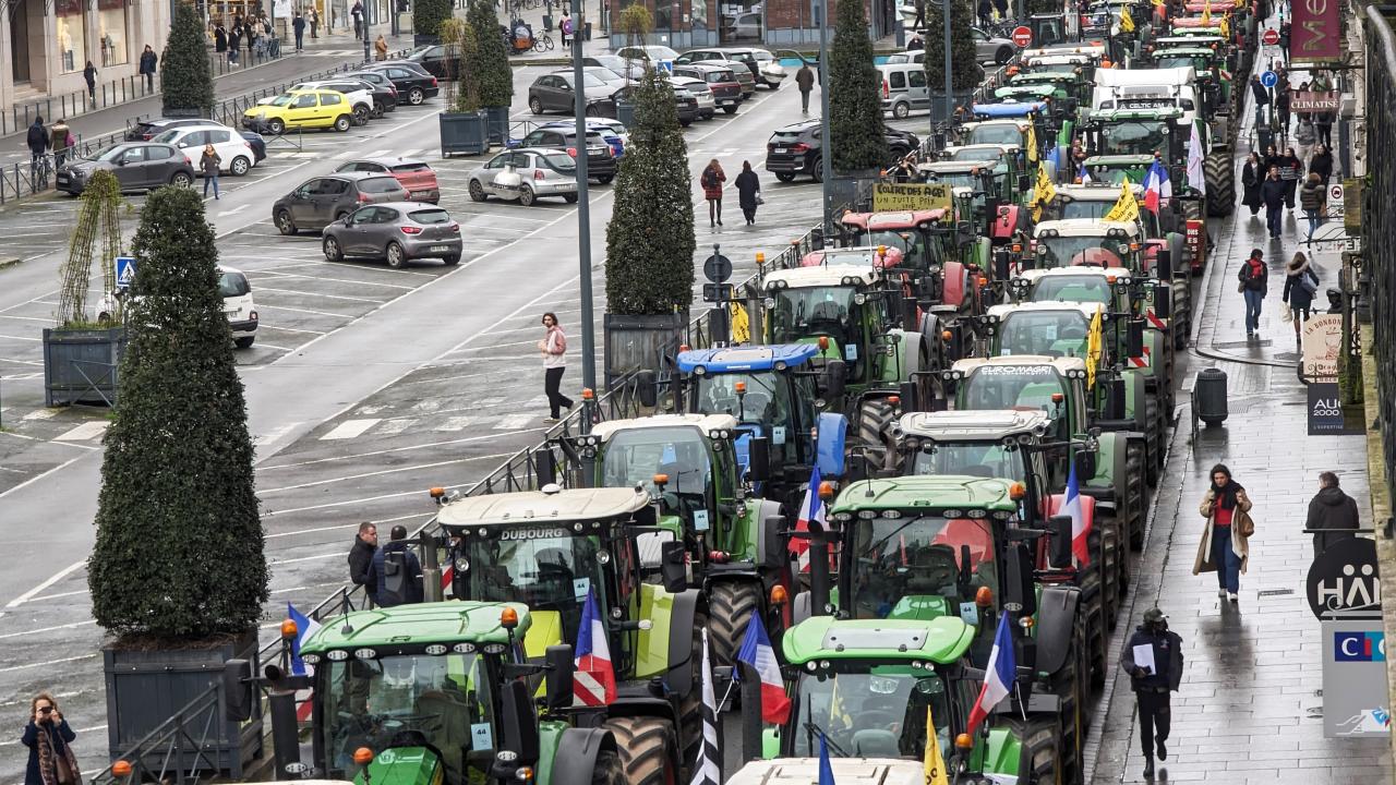 Fransa`nın Breton bölgesindeki Rennes kentinde bir araya gelen çiftçiler, hükümetin tarım sektörüne ilişkin politikalarına tepki gösterdi.