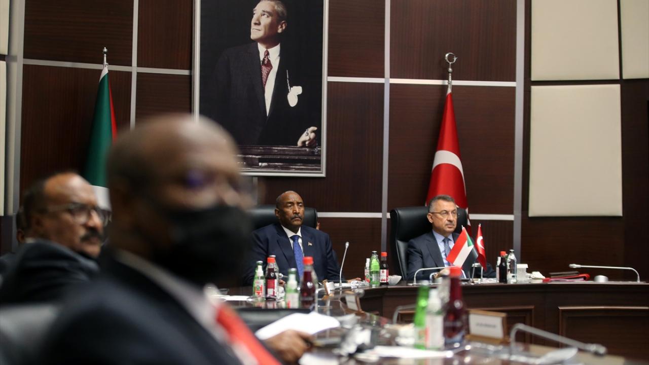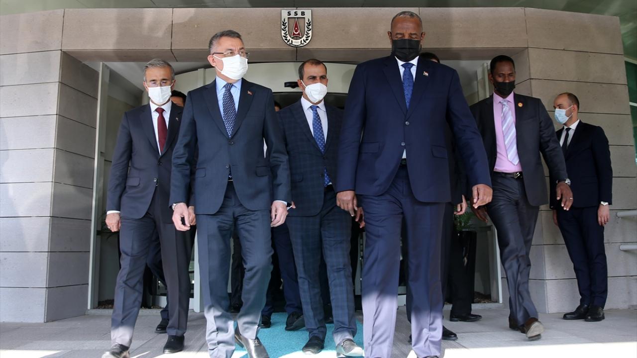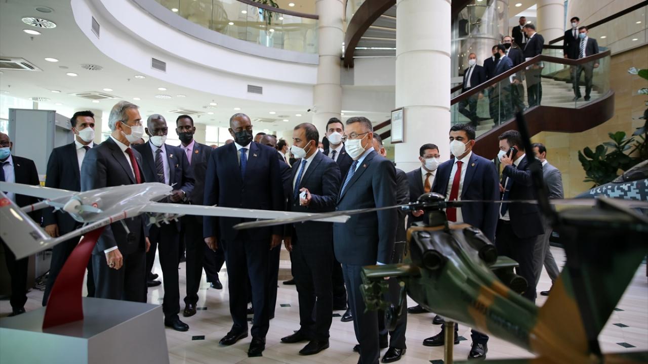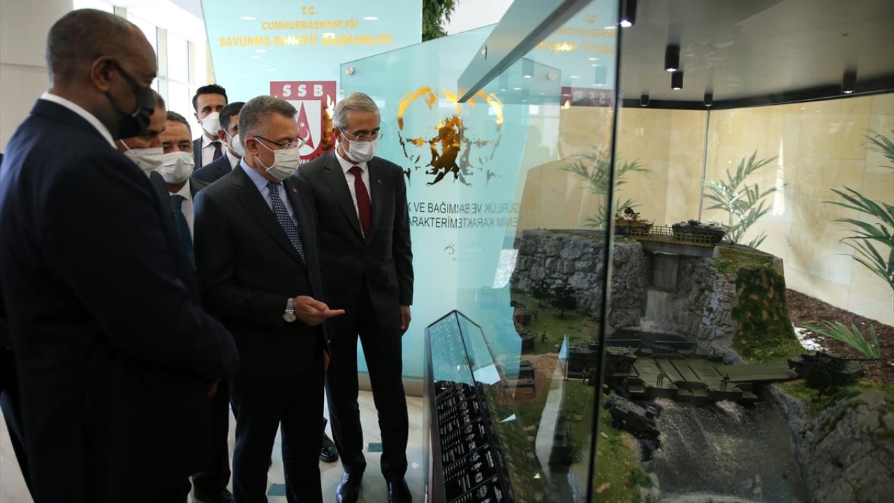 Cumhurbaşkanı Yardımcısı Fuat Oktay ve Sudan Egemenlik Konseyi Başkanı Orgeneral Abdulfettah el-Burhan, Cumhurbaşkanlığı Savunma Sanayii Başkanlığını (SSB) ziyaret etti. SSB Başkanı İsmail Demir'in eşlik ettiği Oktay ve Burhan'a Türk savunma sanayisinin çalışmaları hakkında bilgi verildi.