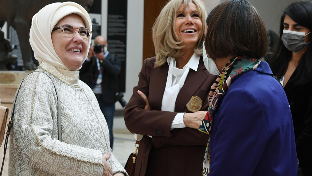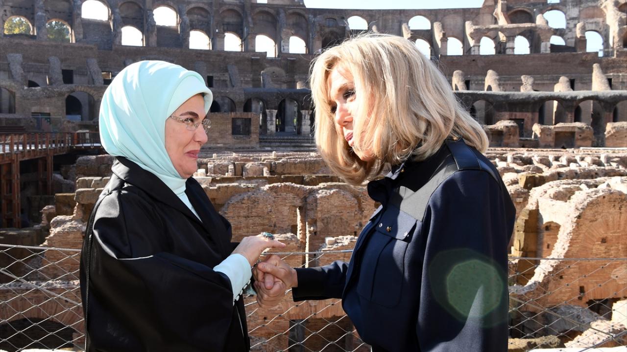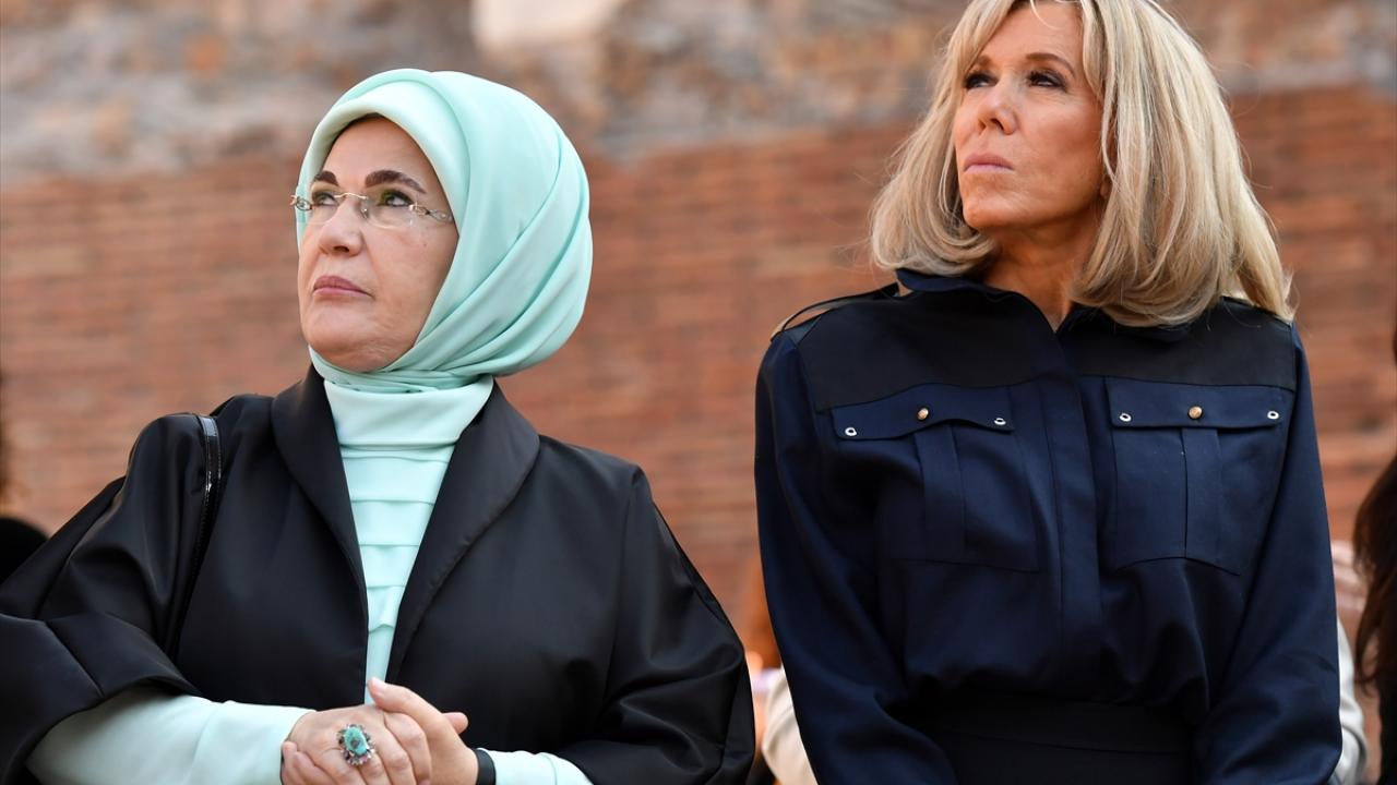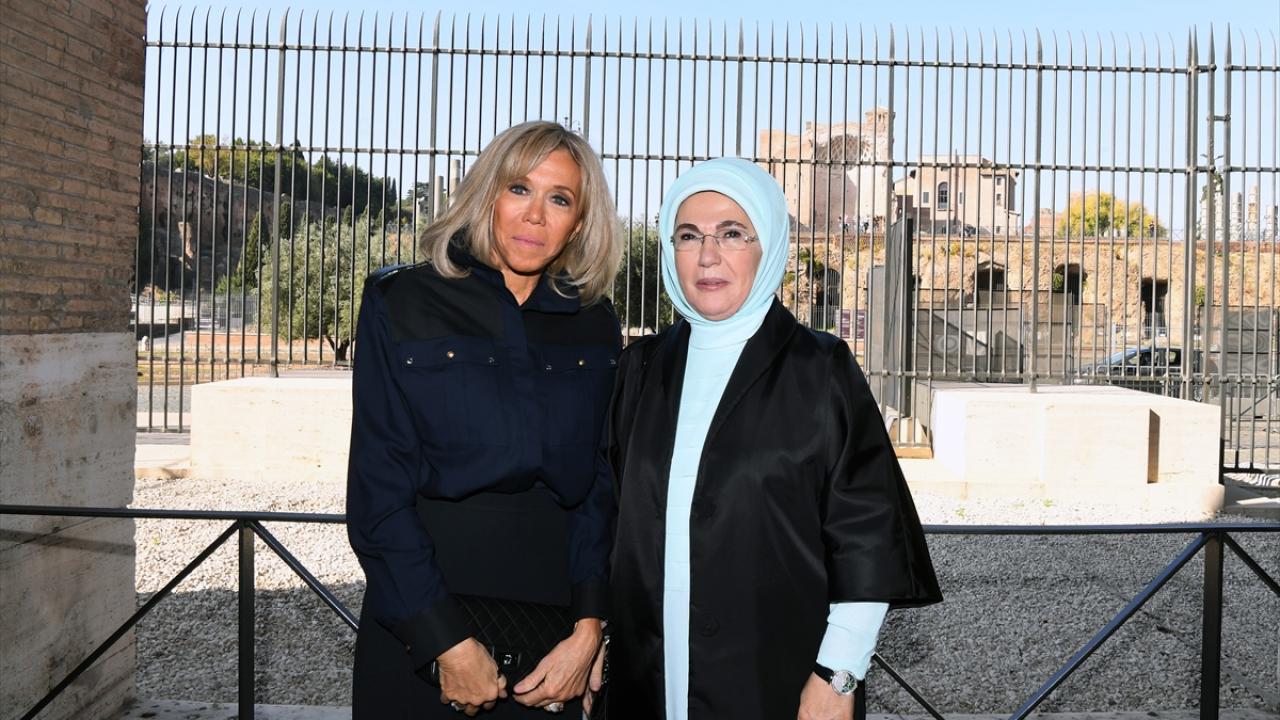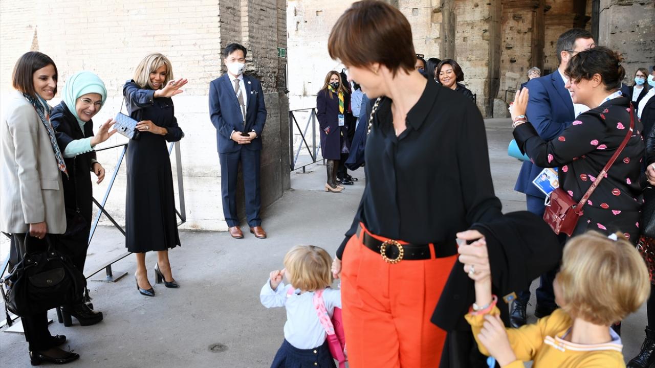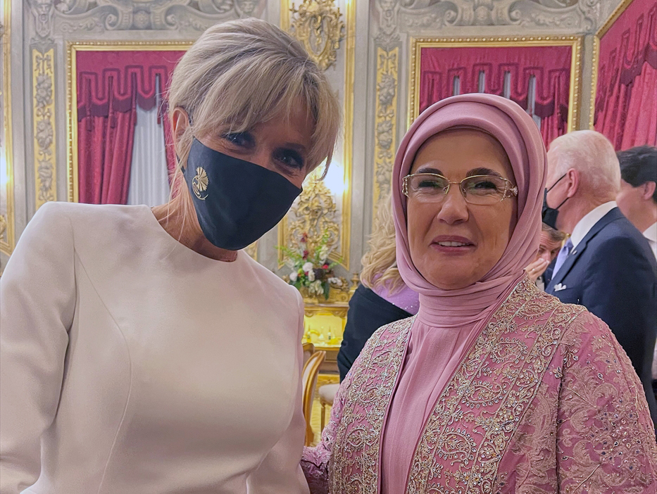 Cumhurbaşkanı Recep Tayyip Erdoğan'ın G-20 Liderler Zirvesi'ne katılmak üzere 30-31 Ekim'de İtalya'nın Roma kentine gerçekleştirdiği resmi ziyarete eşlik eden eşi Emine Erdoğan'ın, zirvenin resmi eş programında, Fransa Cumhurbaşkanı Emmanuel Macron'un eşi Brigitte Macron'la yakın ilişkisi dikkati çekti.