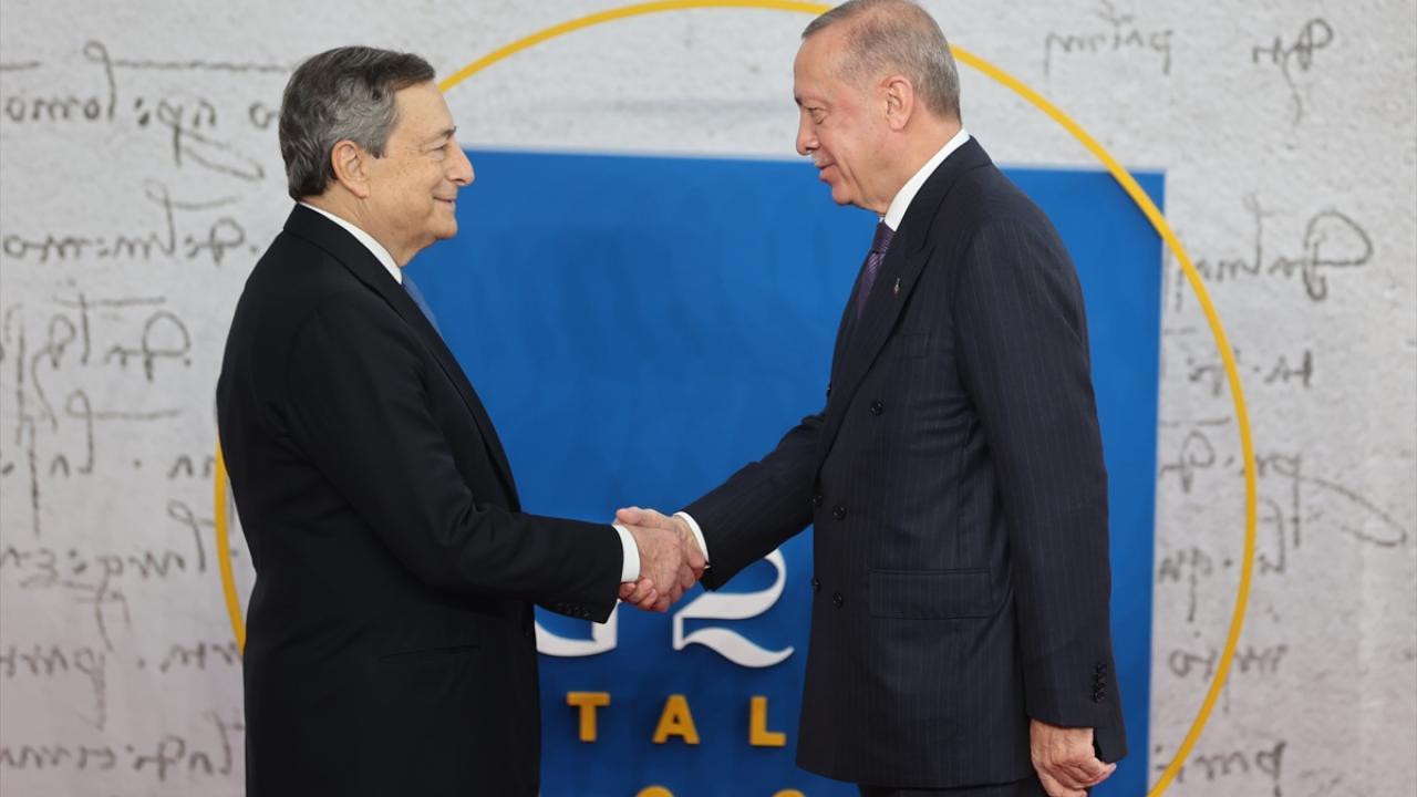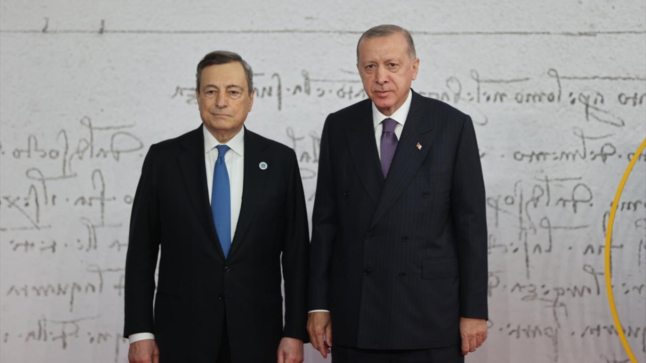 Draghi, Cumhurbaşkanı Recep Tayyip Erdoğan`ın da aralarında bulunduğu konuklarını tek tek kapıda karşıladı.
