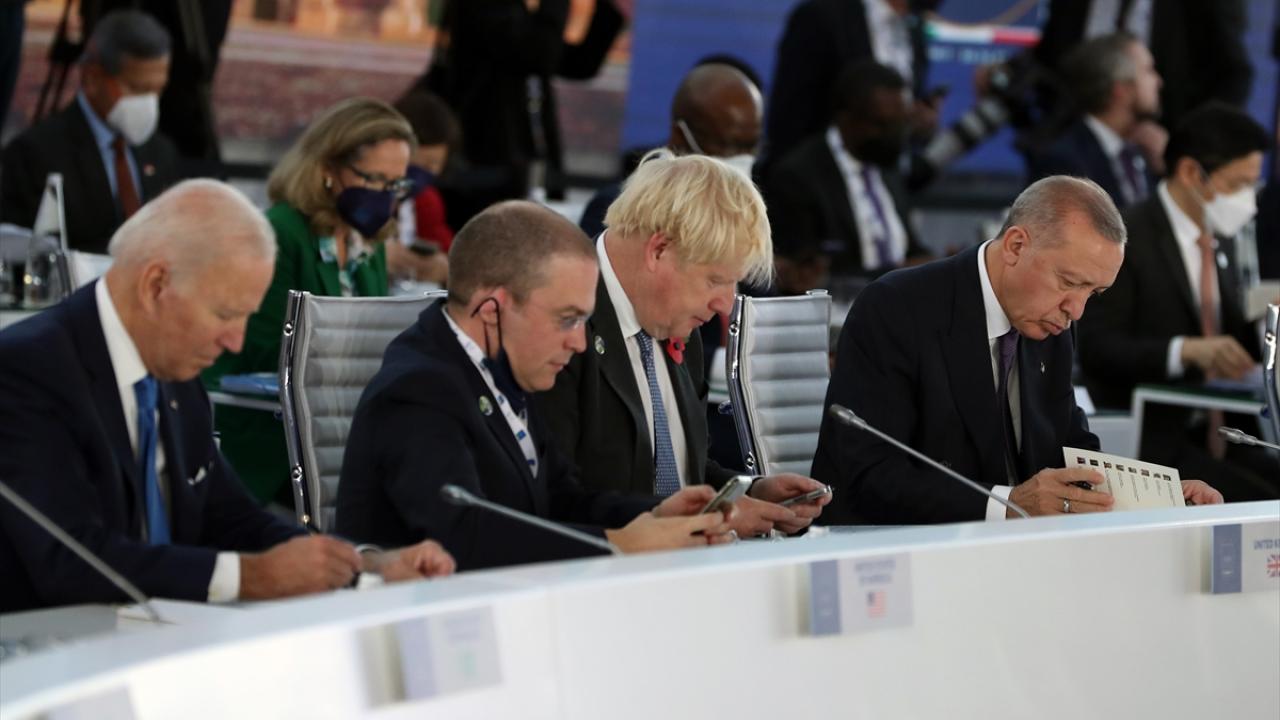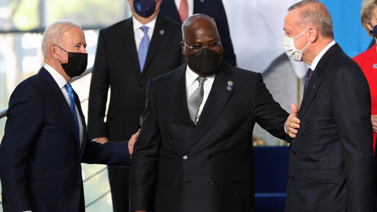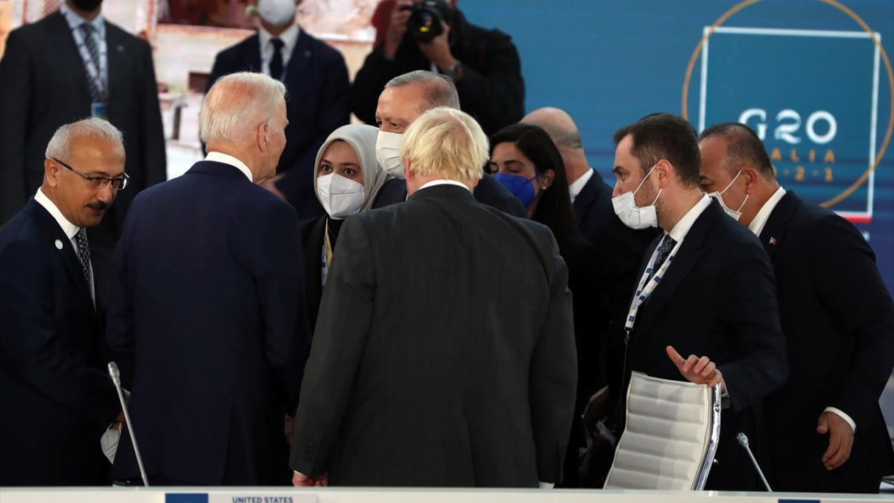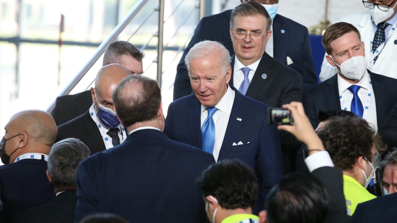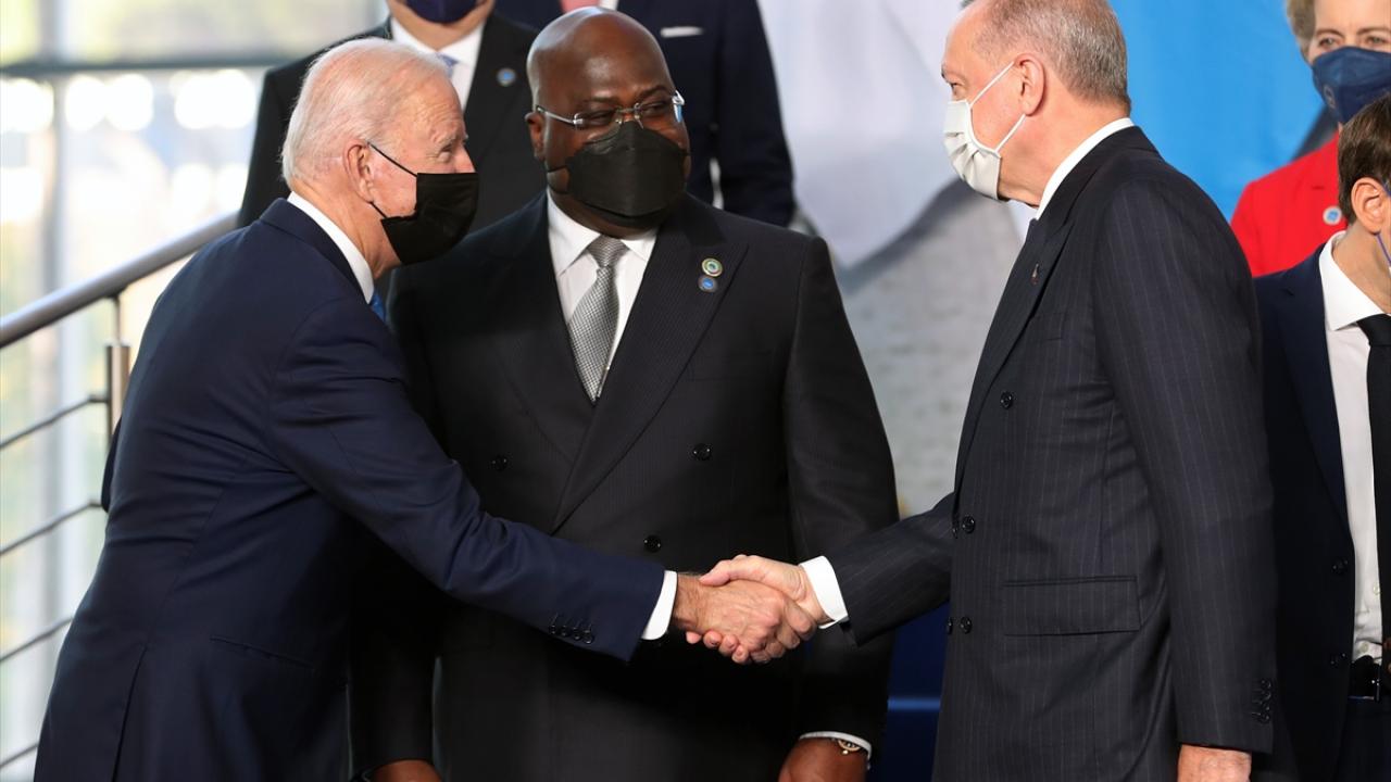 Cumhurbaşkanı Erdoğan, aile fotoğrafı çekimi öncesinde ABD Başkanı Joe Biden ile tokalaştı.