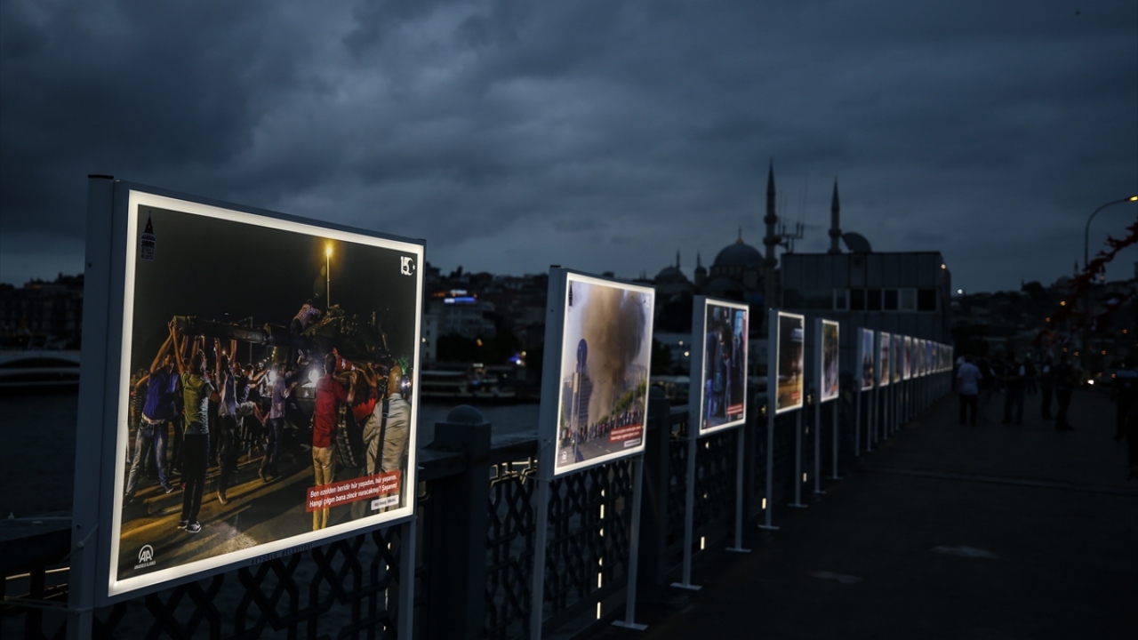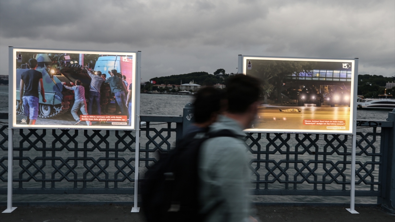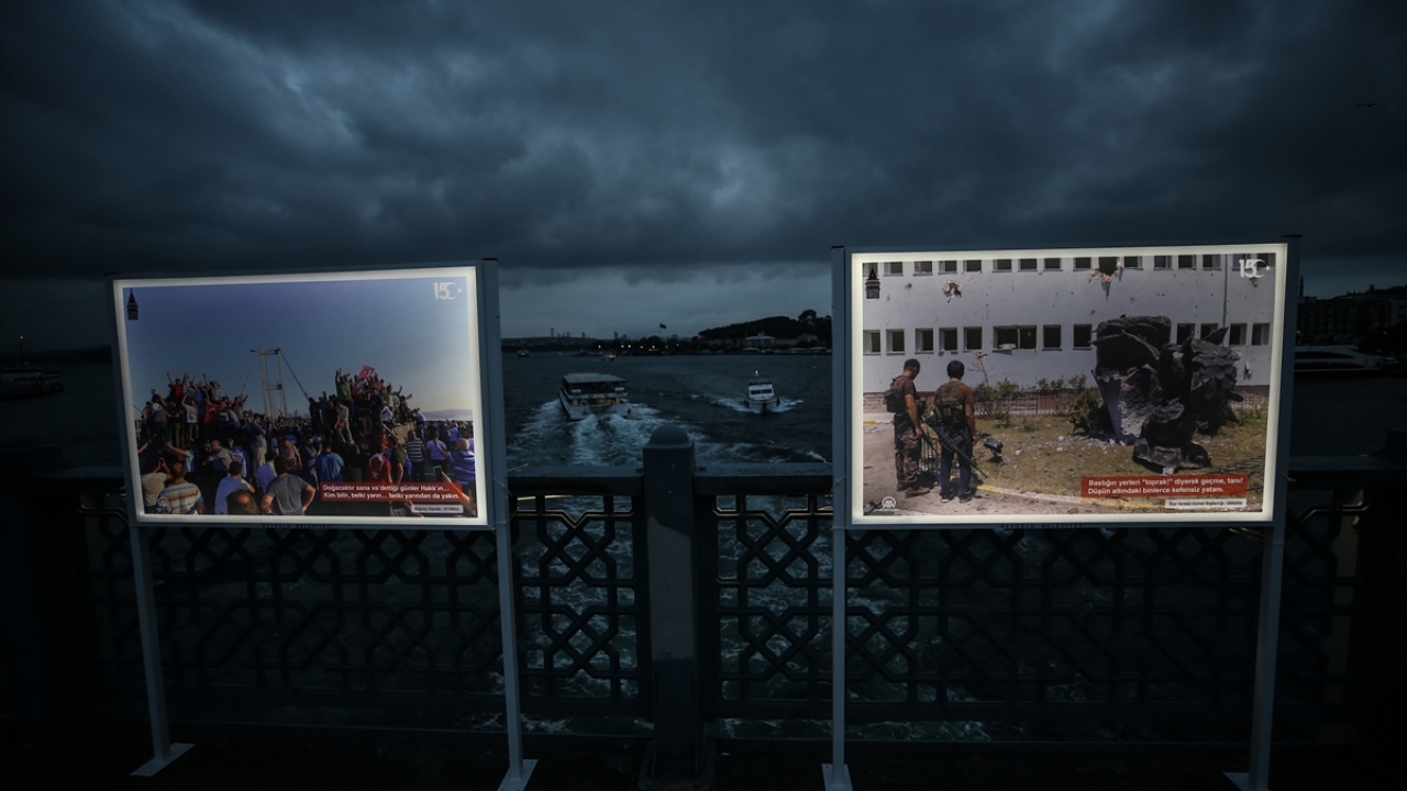 Fetullahçı Terör Örgütü'nün (FETÖ) darbe girişiminde bulunduğu 15 Temmuz gecesi yaşananları ve halkın direnişini yansıtan fotoğraflardan oluşan "15 Temmuz İstiklal Sergisi", Galata Köprüsü'nde açıldı.