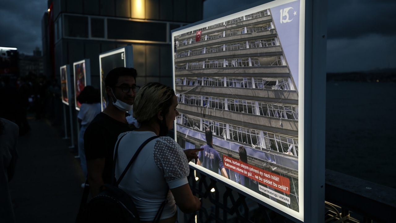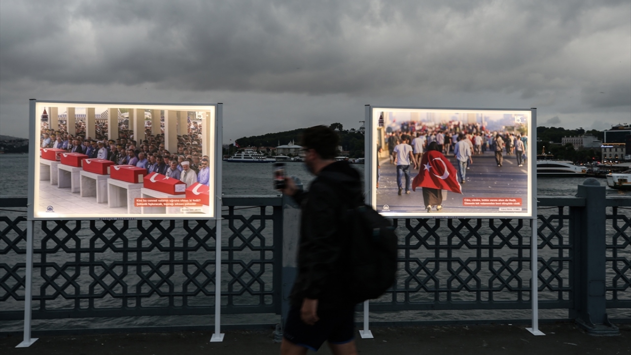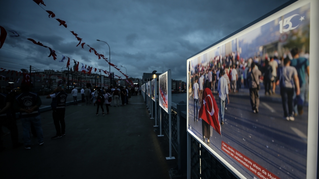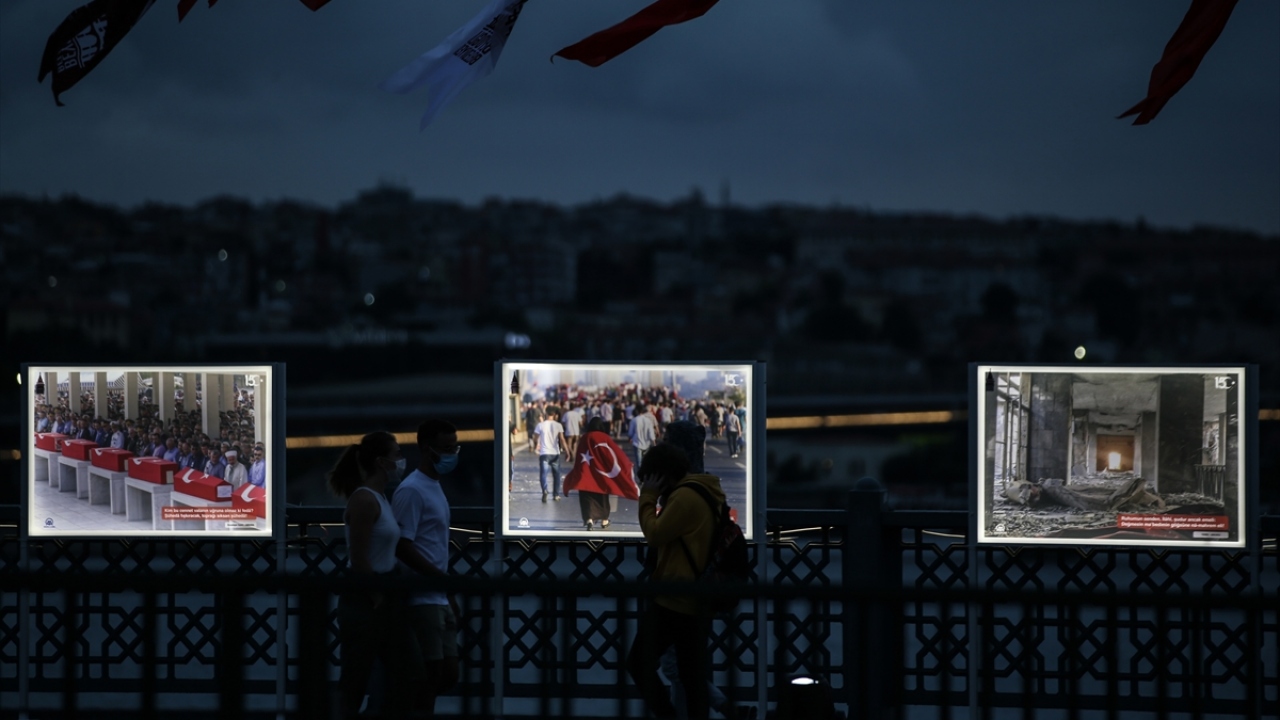Fetullahçı Terör Örgütü'nün (FETÖ) darbe girişiminde bulunduğu 15 Temmuz gecesi yaşananları ve halkın direnişini yansıtan fotoğraflardan oluşan "15 Temmuz İstiklal Sergisi", Galata Köprüsü'nde açıldı.
