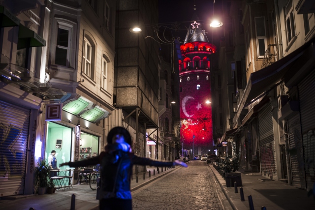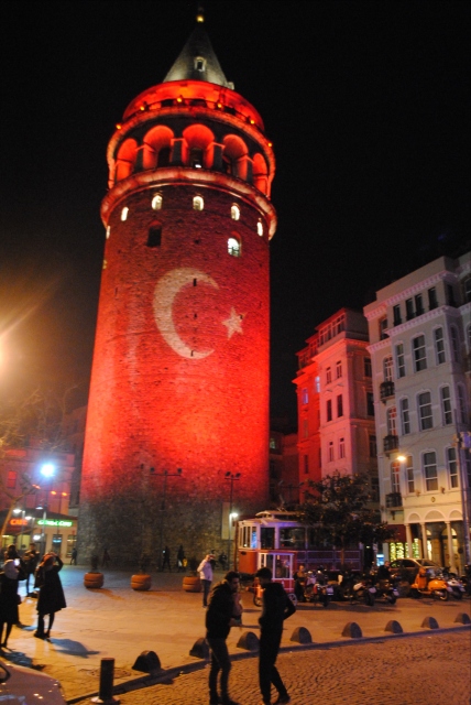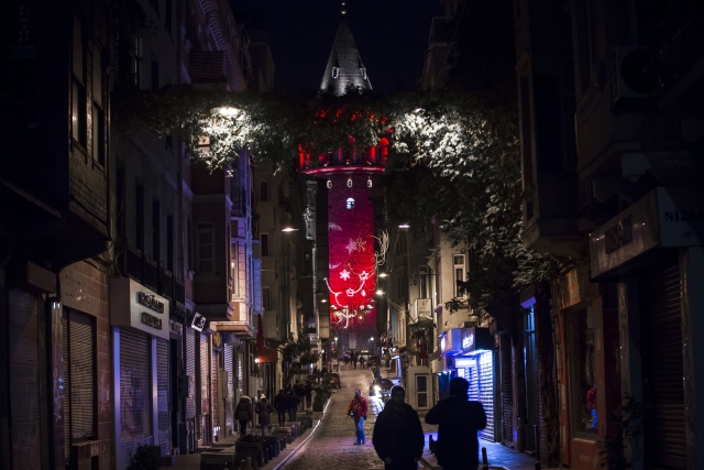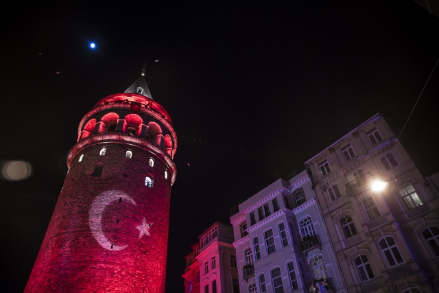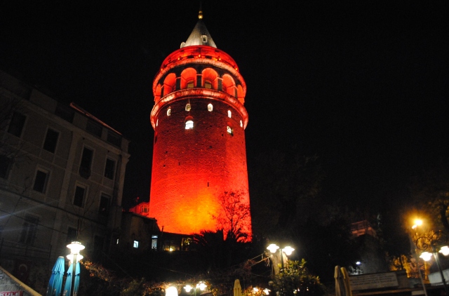 İstanbul'daki terör saldırısına tepki için Galata Kulesi'ne Türk bayrağı yansıtıldı. İstanbul Büyükşehir Belediyesi şirketlerinden Enerji A.Ş. tarafından yapılan aydınlatmayla Galata Kulesi, kırmızı beyaza büründü.